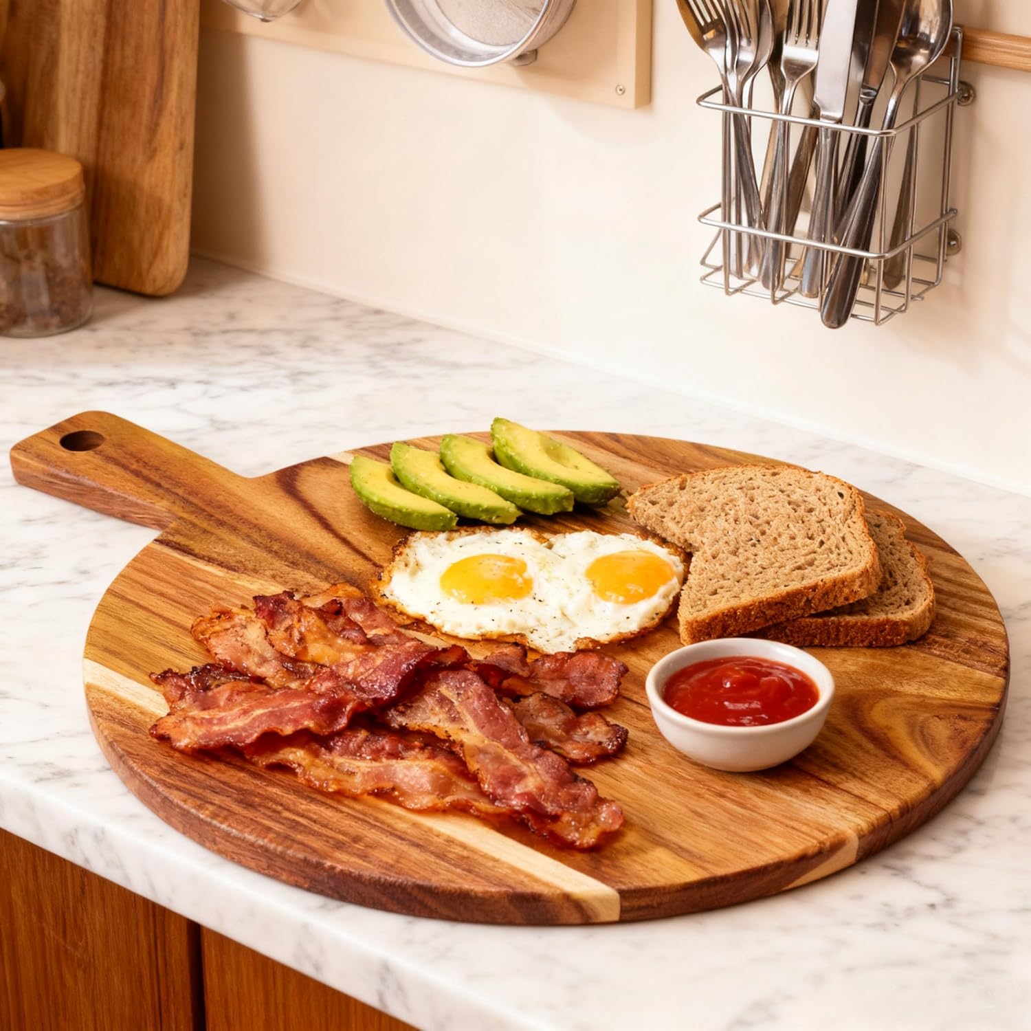 Large Acacia Wood Cutting Board with Handle