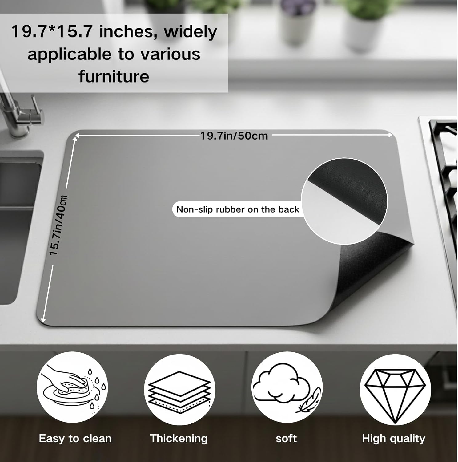 Three-layer thickened drying mat :The 0.2-inch thick special PU surface can quickly absorb water and well hide coffee stains and milk stains, always keep your countertop dry and clean. You can place it beside the faucet or under the coffee machine. This is a very practical kitchen accessory that every family deserves to have.