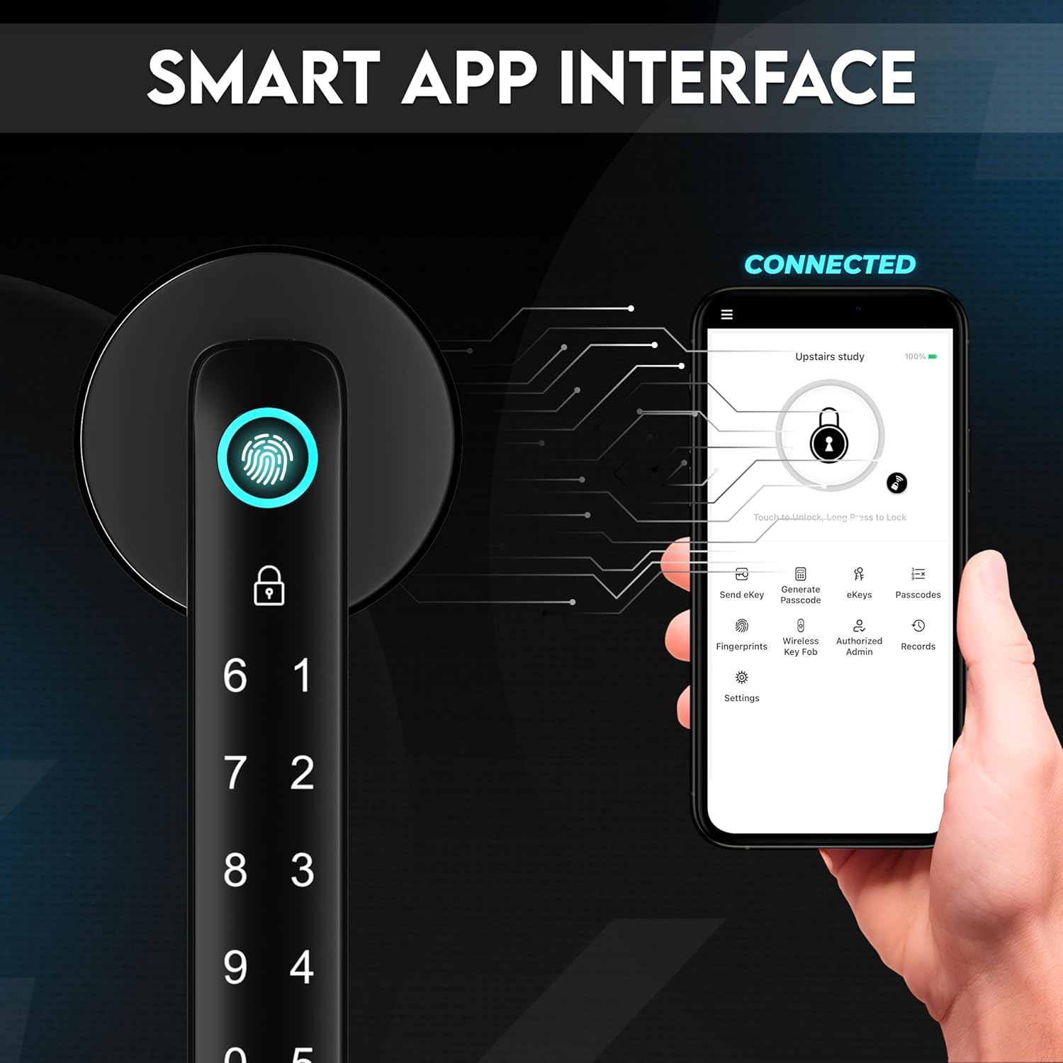 🔐 [𝟒 𝐒𝐄𝐂𝐔𝐑𝐈𝐓𝐘 𝐌𝐎𝐃𝐄𝐒] – Key/Smartphone/Passcodes/Fingerprints: Bid farewell to unwelcome guests. Register up to 20-fingerprints, modify passcodes, reset locks & auto-lock timer with ease through our smartphone application using WiFi/Bluetooth connectivity