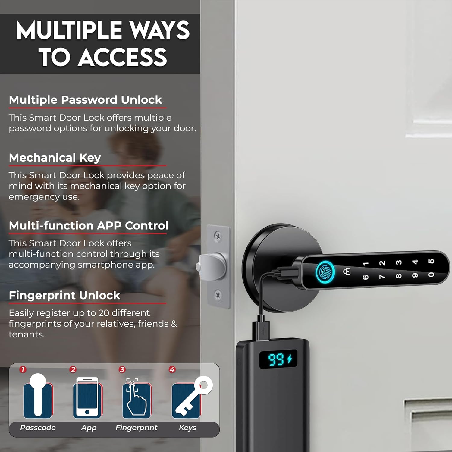 🔐 [𝐋𝐎𝐍𝐆-𝐋𝐀𝐒𝐓𝐈𝐍𝐆 𝐁𝐀𝐓𝐓𝐄𝐑𝐘, 𝐄𝐌𝐄𝐑𝐆𝐄𝐍𝐂𝐘 𝐂𝐇𝐀𝐑𝐆𝐈𝐍𝐆] – Our digital door lock comes with 4 AAA long lasting batteries (included). In case of emergency, use the USB charging option. Receive low battery alerts, ensuring you’re always aware and in control