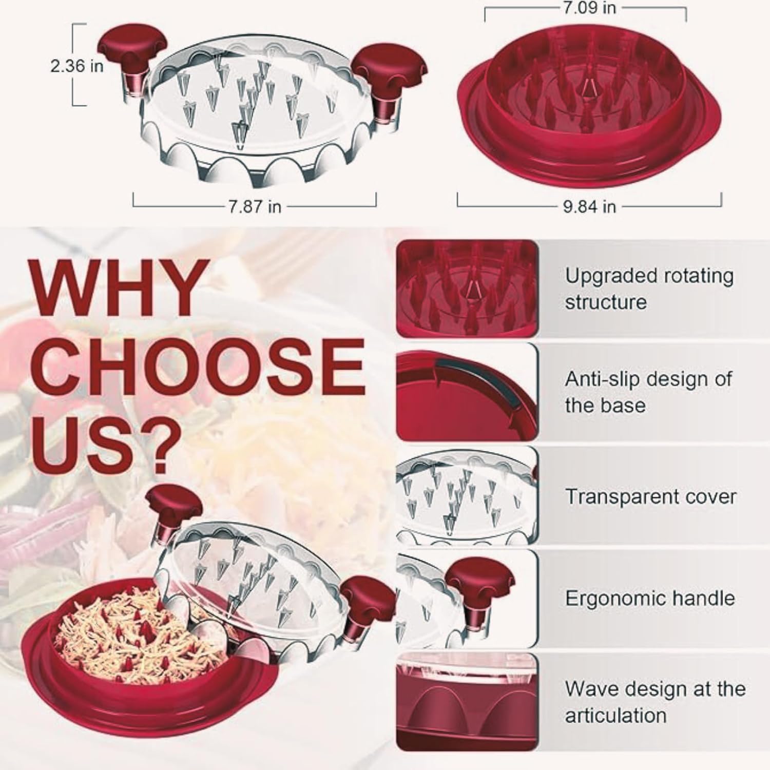 UPGRADED CHICKEN SHREDDER TOOL – PERFECT FOR HOME USE Shred chicken breast in seconds with our newly upgraded chicken shredder—designed specifically for speed, convenience, and versatility in your kitchen. This meat shredder features a twist-and-rotate design, a clear lid, and an enhanced internal structure that efficiently shreds meat without the mess. Whether you’re preparing shredded chicken, ground beef, or soft vegetables, this is one of the best shredders for home use.