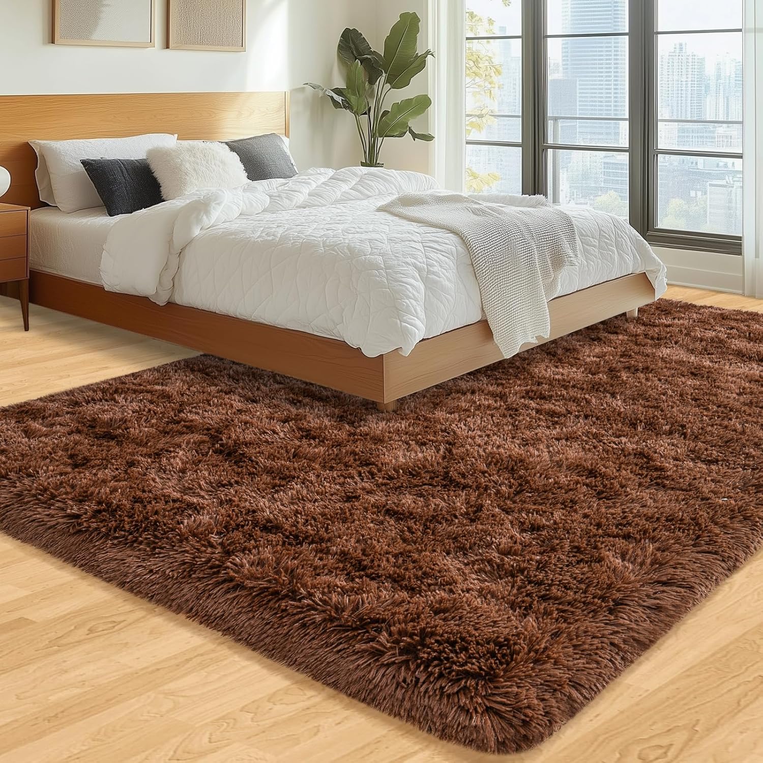 MODERN DESIGN:The brown fuzzy rug features a solid color minimalist design, which not only makes your room a cozy space, but also effectively adds a sense of warmth and style. The brown fluffy rugs provide a soft and cozy touch that makes you feel like you’re strolling on a cloud, ideal for home decor – perfect for living room, bedroom, nursery, kids room, girls room, boys room and playroom.