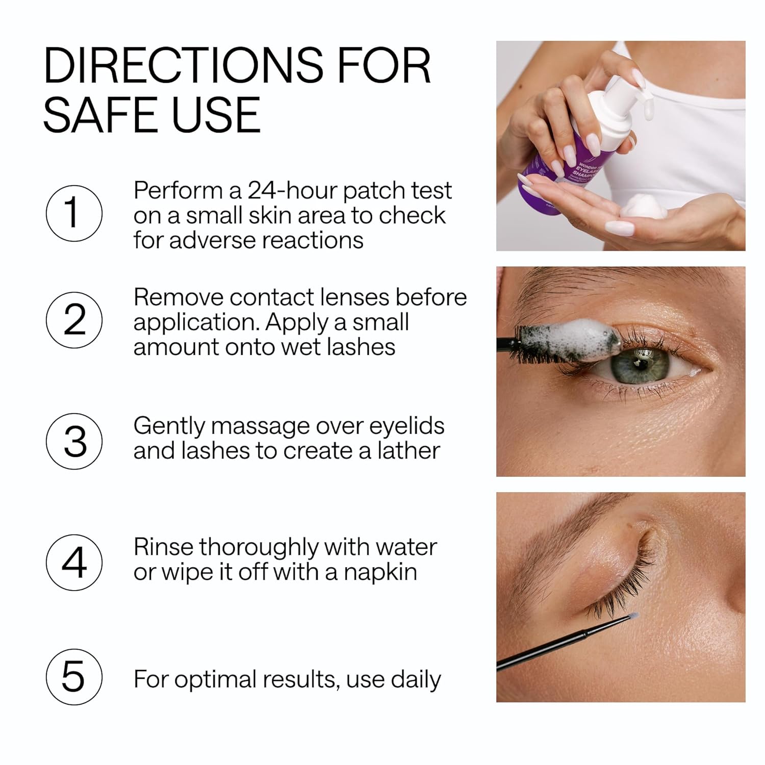 EASY-TO-USE LASH SHAMPOO FOR LASH EXTENSIONS – Apply, lather, and rinse! Our lash soap for extensions, paired with eye lash cleaning kit of brushes, makes your daily lashes shampoo cleaning routine effortless & effective