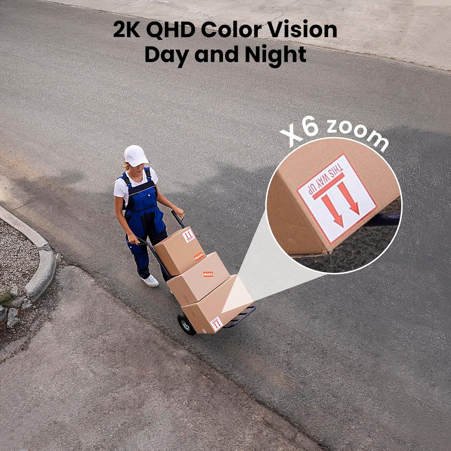 2K QHD & Color Night Vision: 2K QHD with F/1.6 aperture captures 2.5x more light than standard cameras, delivering ultra-clear color images. See every detail of nighttime visitors—whether it’s an unexpected guest or a curious critter.