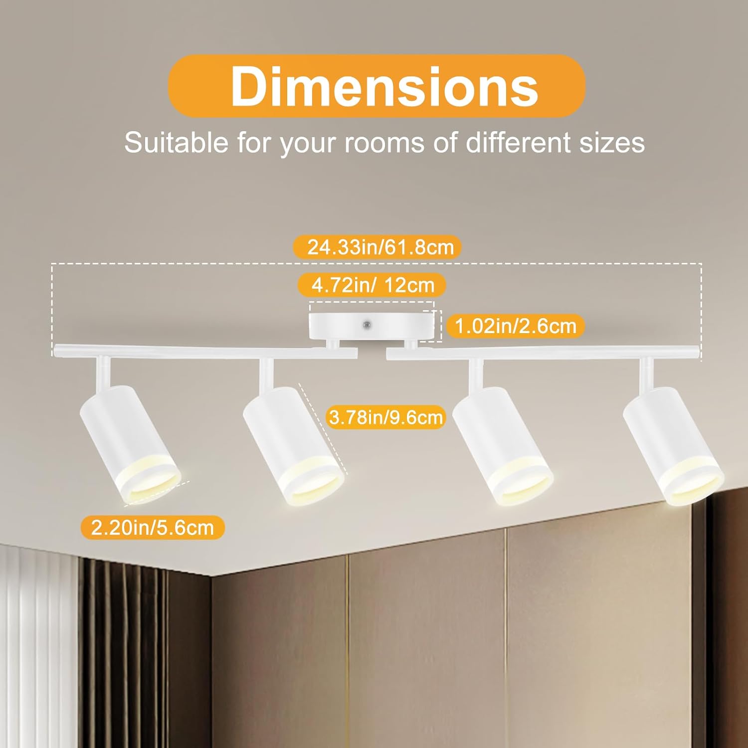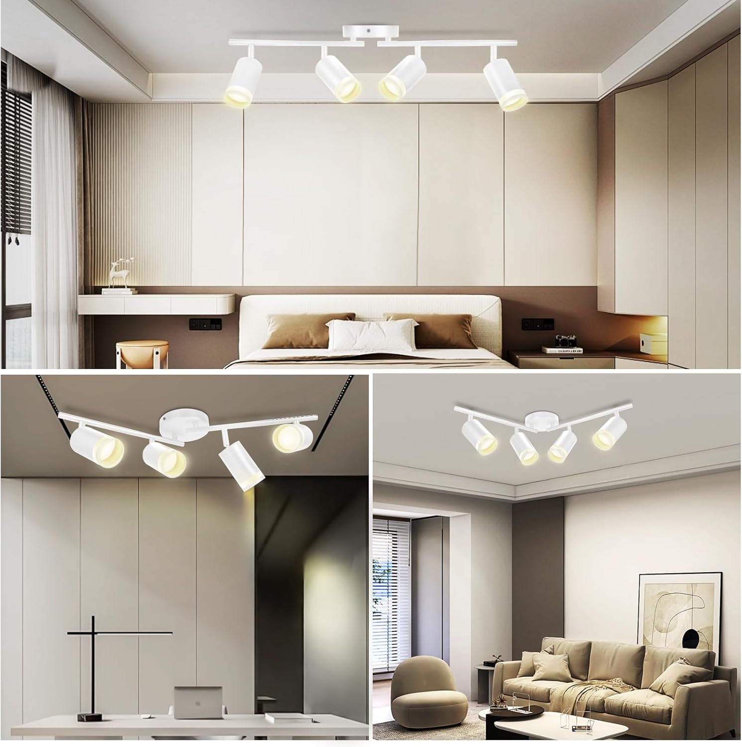 Versatile Application: Karyoosi 4-way ceiling track light effortlessly customizes to meet your lighting needs, making it ideal for accentuating art walls or simply adding ambient lighting to living spaces. It excels in areas where bright illumination is not necessary, such as bathrooms, bedrooms, entrances, kitchens, dining areas, offices, and living rooms. Its distinctive practicality shines through in diverse settings