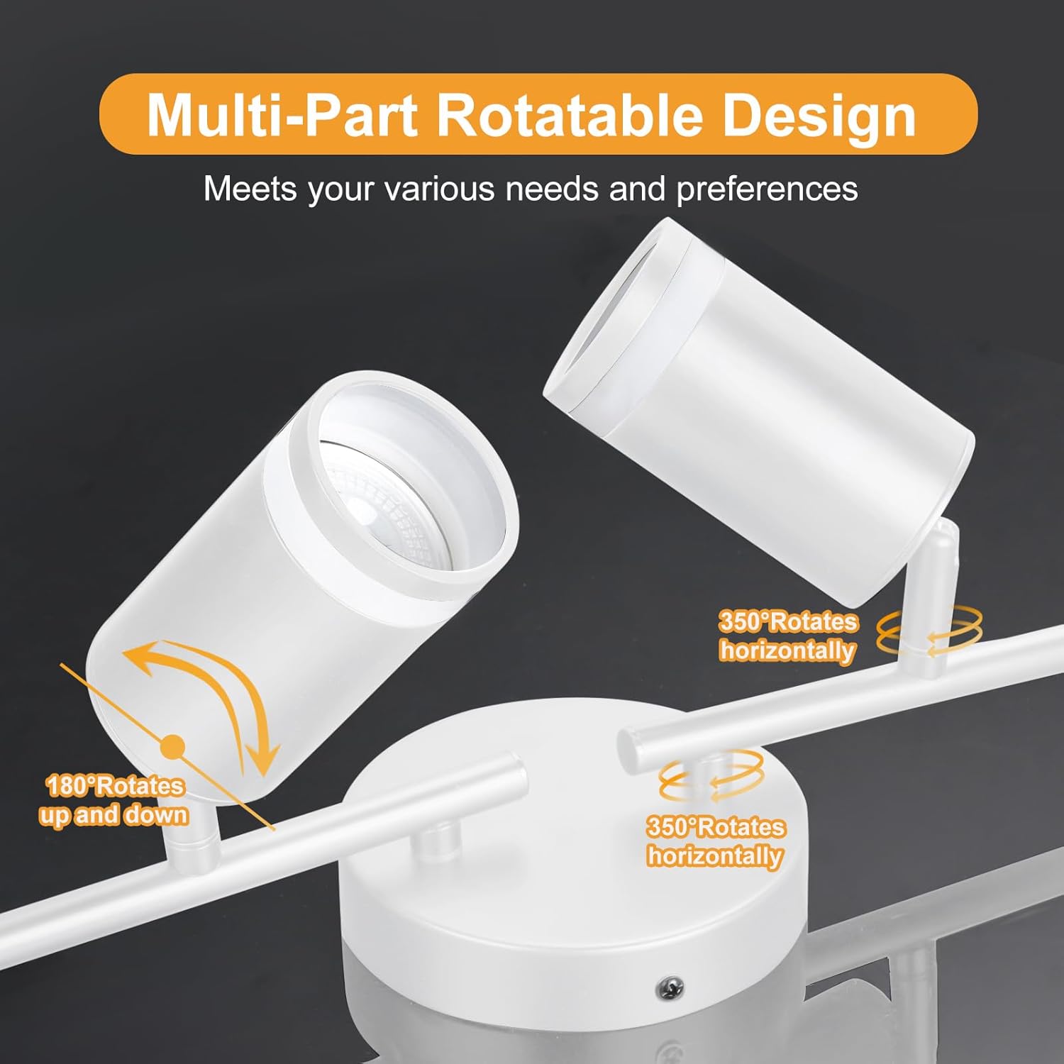 Multi-Angle Lighting: Multi-part flexibly adjustable track light. The lamp arm can rotate 350° horizontally, and the lamp head can rotate 350° horizontally and 180° up and down. This flexible design provides an infinite array of lighting adjustments, allowing for the customization of the track light shape to ensure illumination reaches every desired corner
