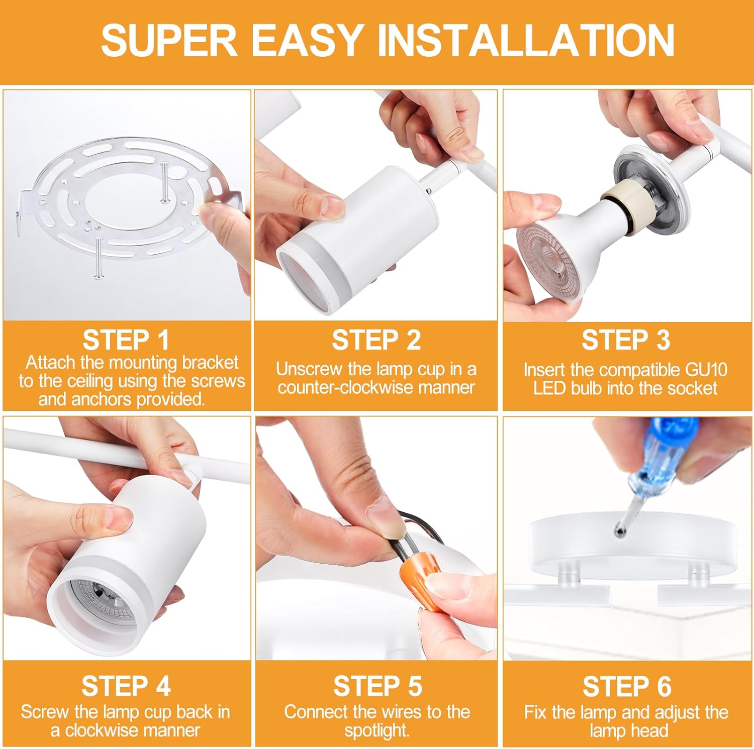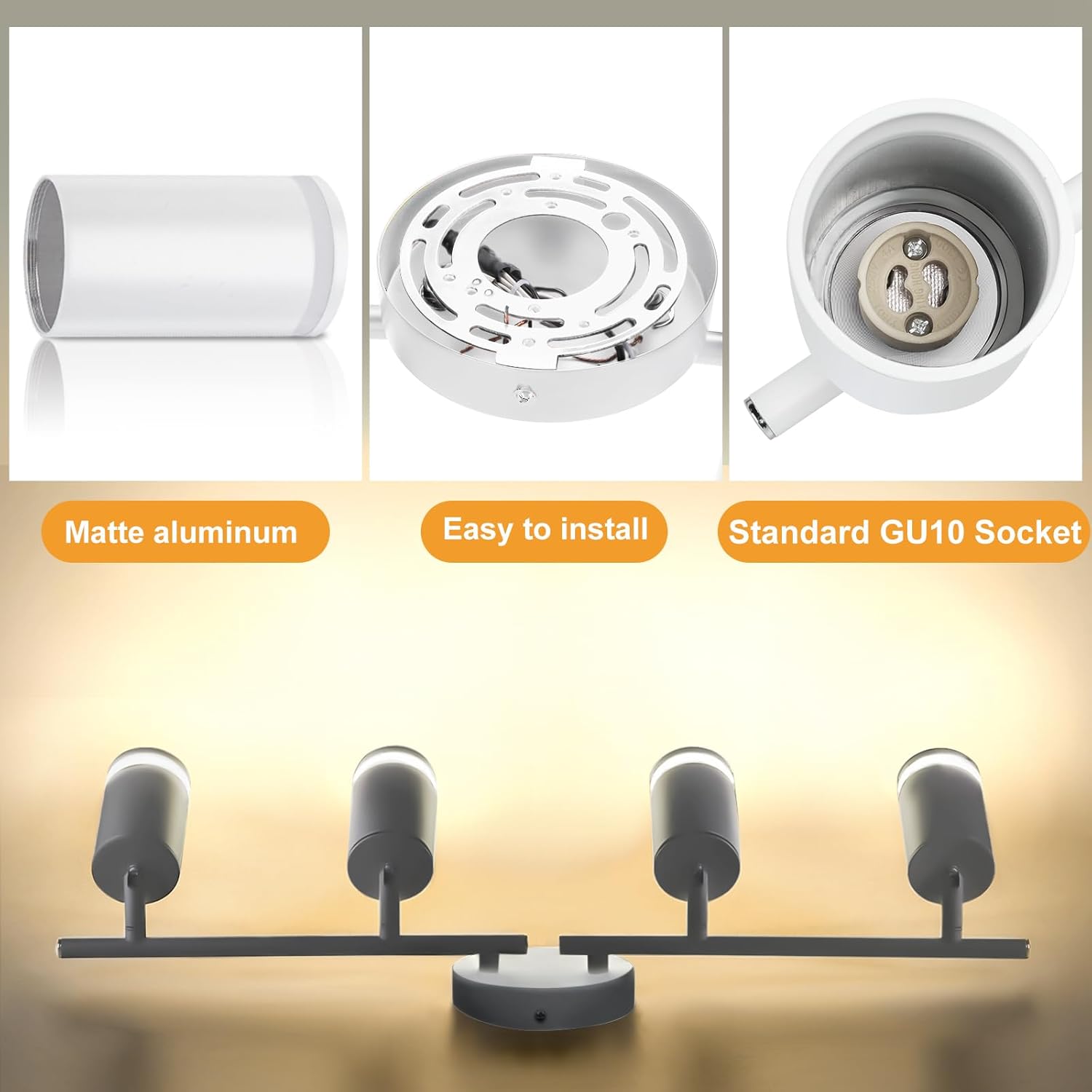 Easy Installation: Our track lighting kit features an updated design, allowing for effortless installation and bulb replacement by simply unscrewing the lamp cup. It includes all necessary installation hardware for a quick and easy setup – suitable for mounting on sloped or vaulted ceilings. However, for your safety, it is recommended to install under the guidance of a professional