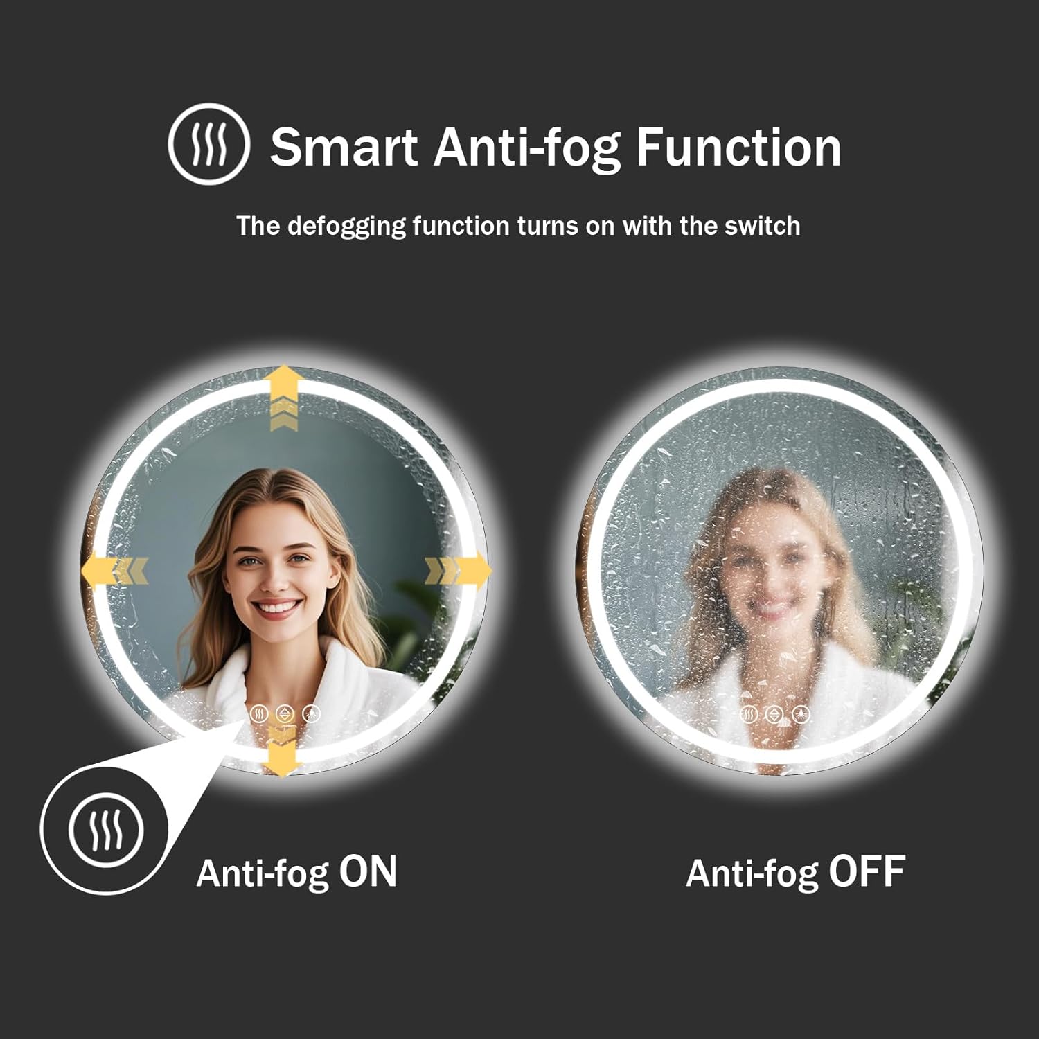【HD Anti-Fog Mirror Surface】: The LED bathroom mirror utilizes advanced anti-fog technology to ensure a crystal-clear reflection even after hot showers, making it perfect for daily use.