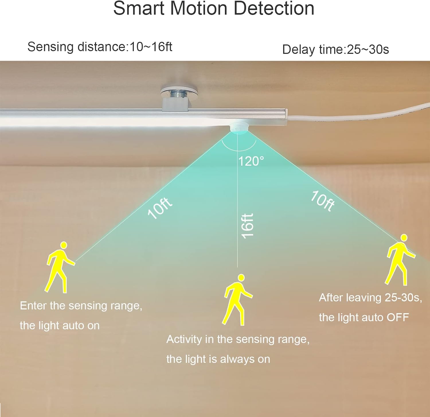 PIR Sensor Technology: It can detect the motion of humans in the dark, When a movement within 10-16 feet is detected, the motion sensor light will automatically turn on. If no motion is detected after 25-30 seconds, the motion sensor cabinet lights will automatically turn off. very convenient and energy efficient.