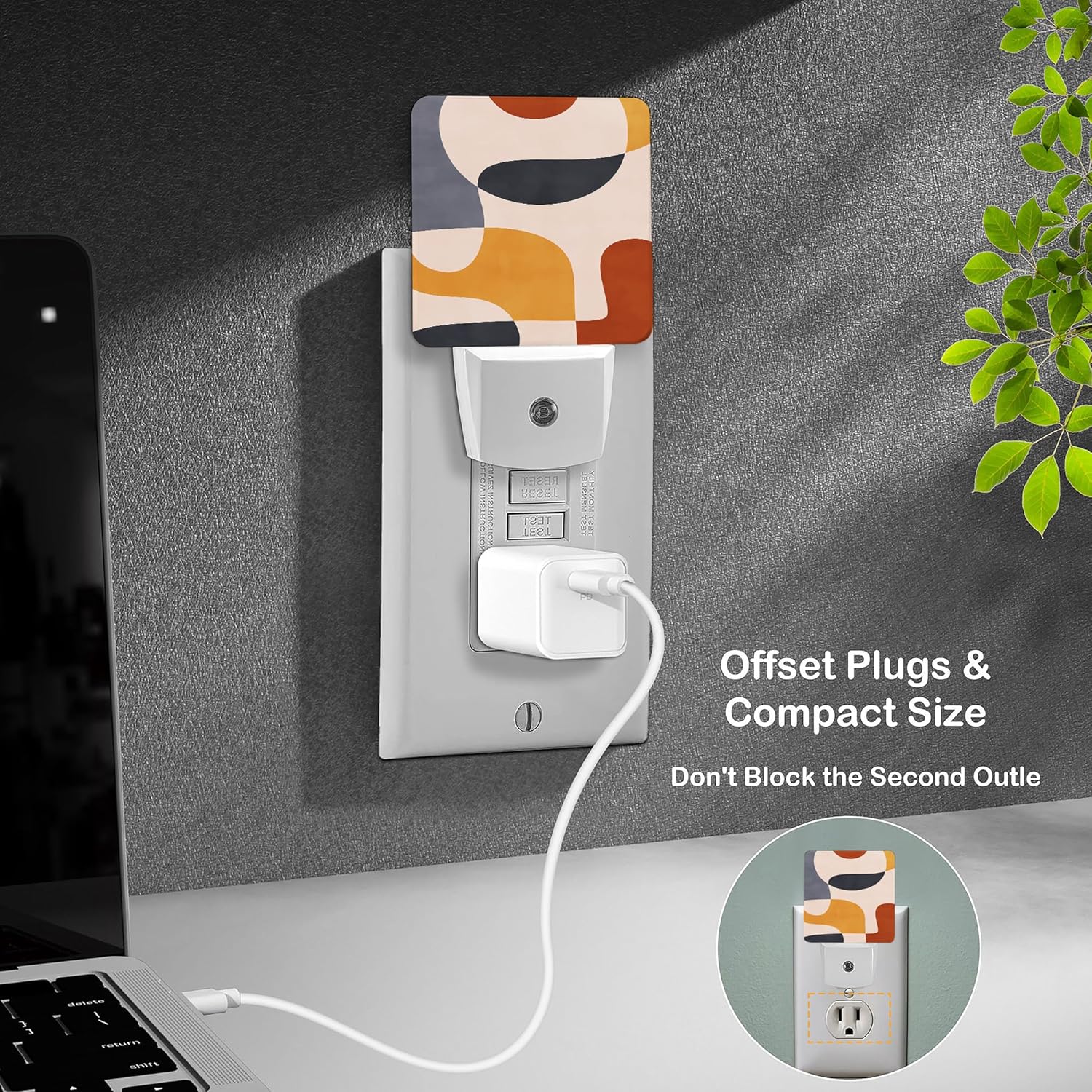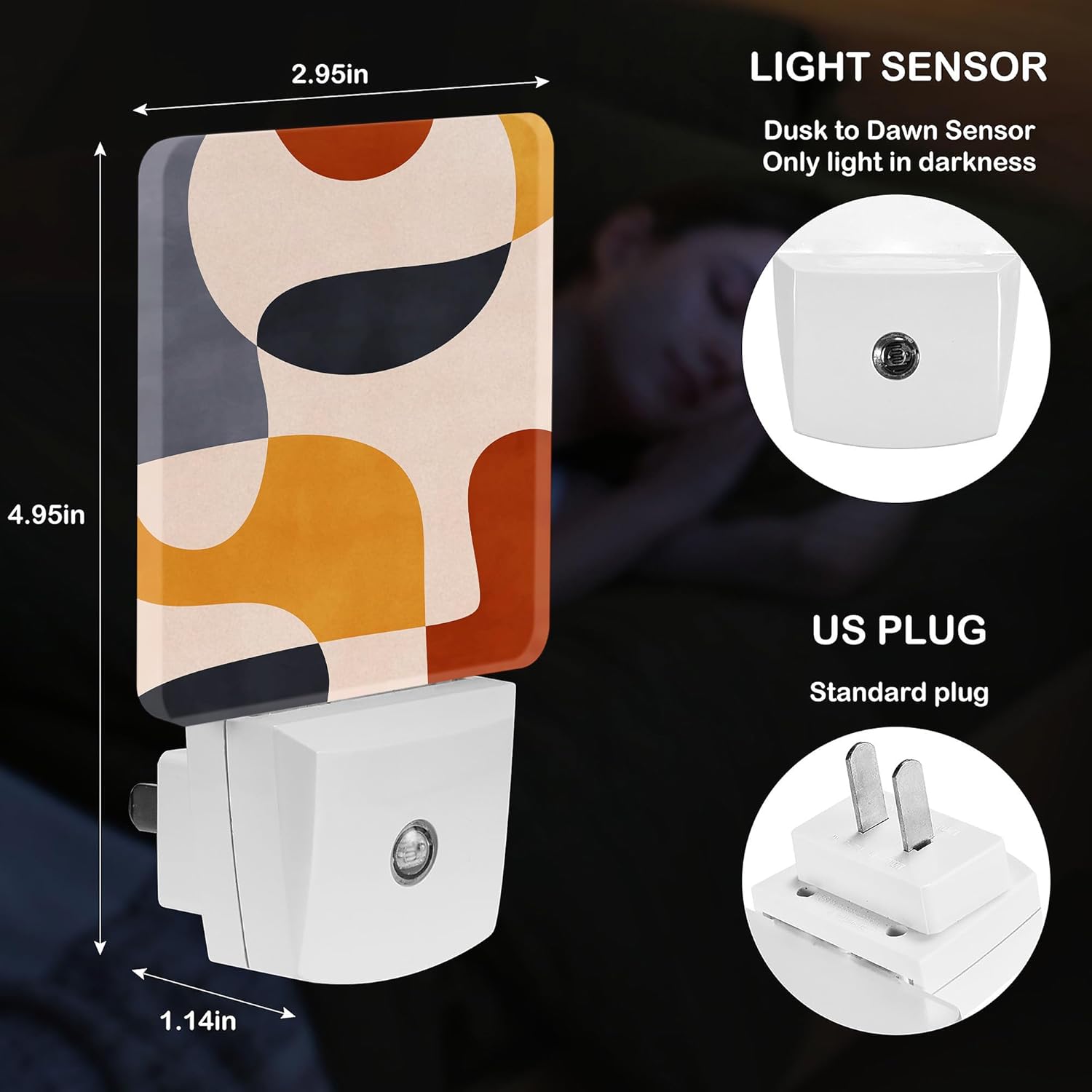 LED Night Light Lamp with Smart Sensor Dusk to Dawn Sensor,Abstract Geometric Wall Decoration Night Light Daylight White,0.5W Plug-into Wall for Adults,Bedroom,Bathroom,Hallway,Kitchen