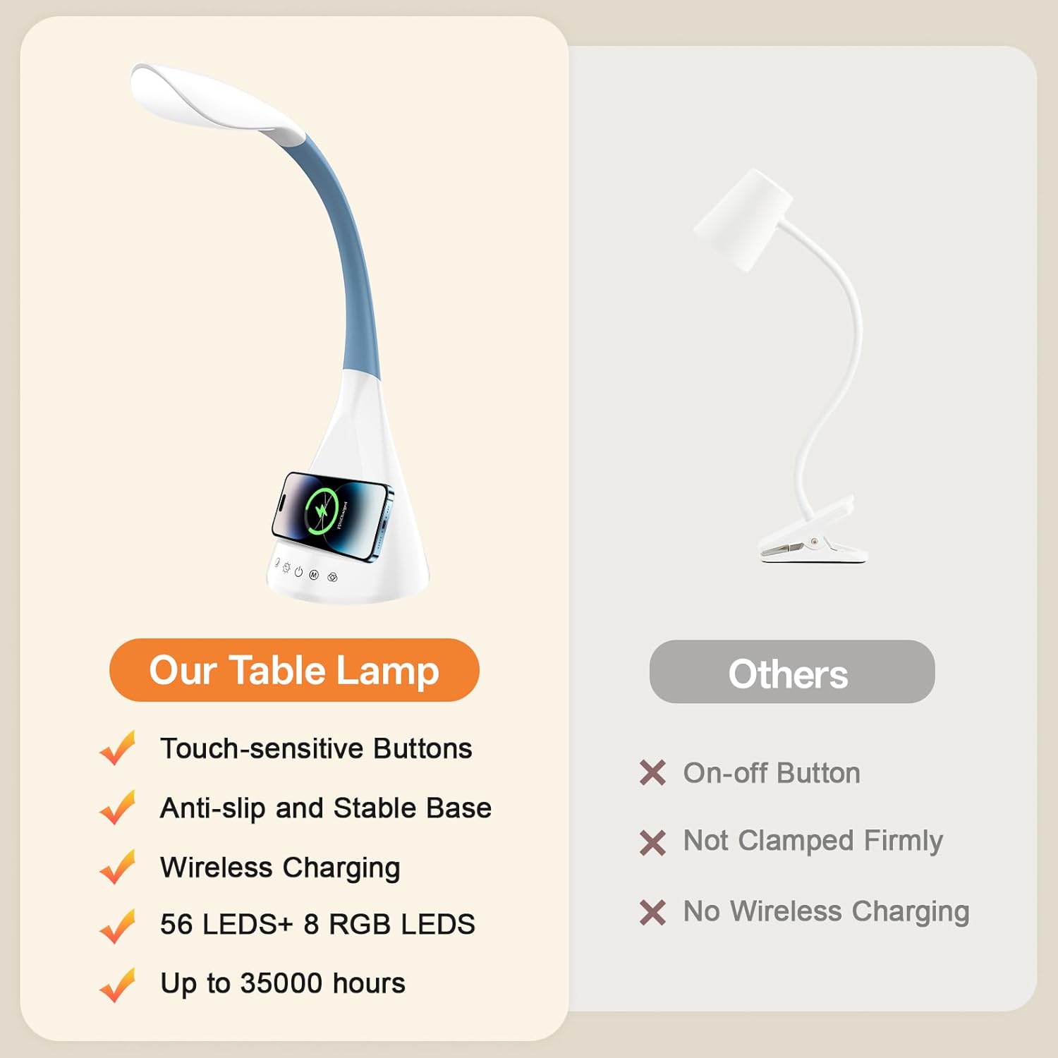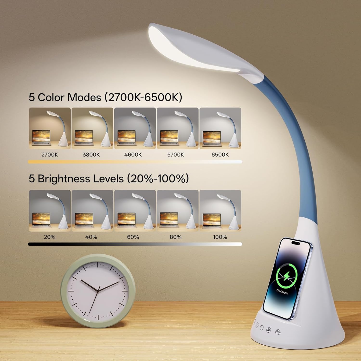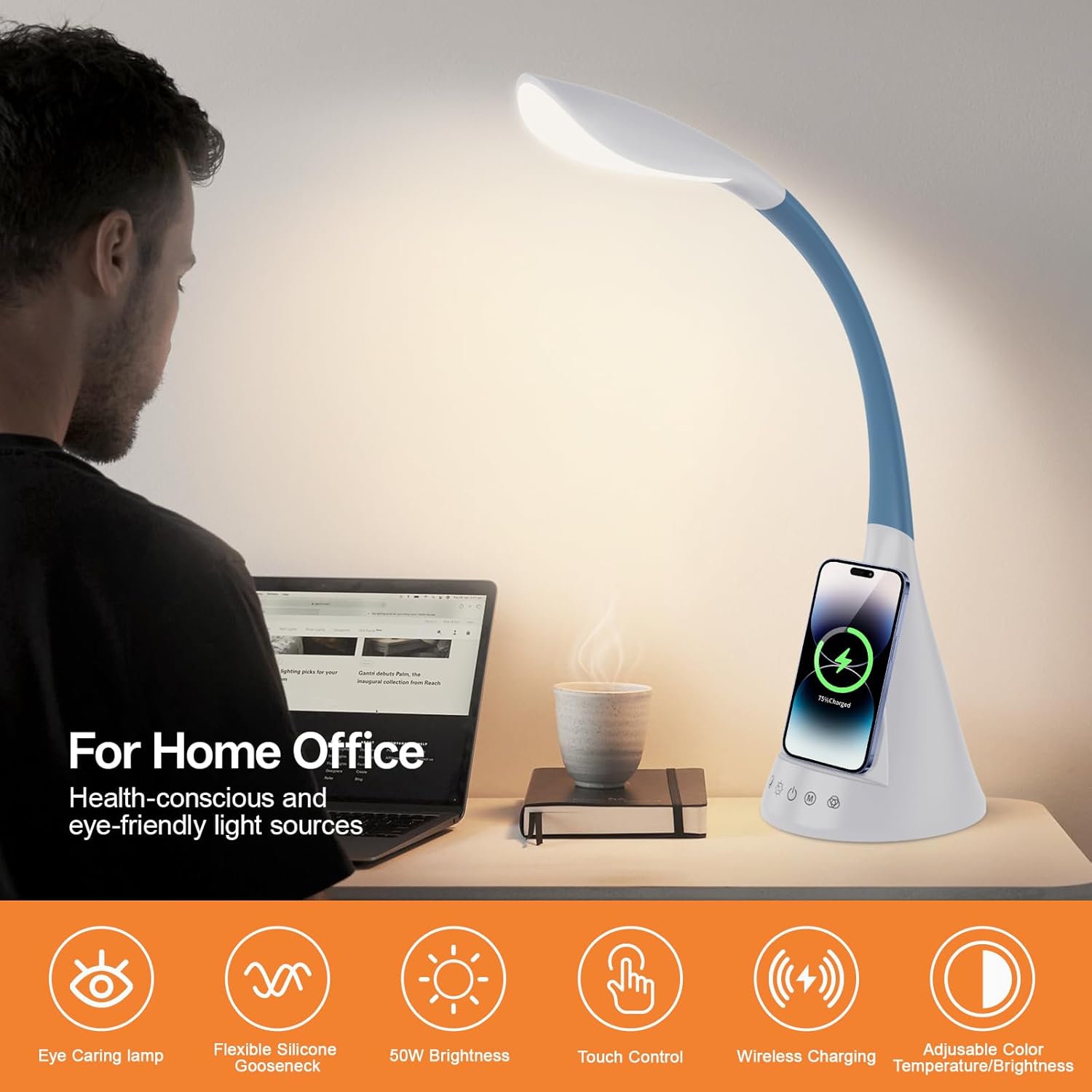 【SMARTPHONE 360°ROTATION CHARGING】: 50W fast wireless charging function, one charge can last up to 35,000 hours. When using the desk lamp, you can charge your cell phone directly, 360° rotation of the phone, you do not need to plug a separate cable.