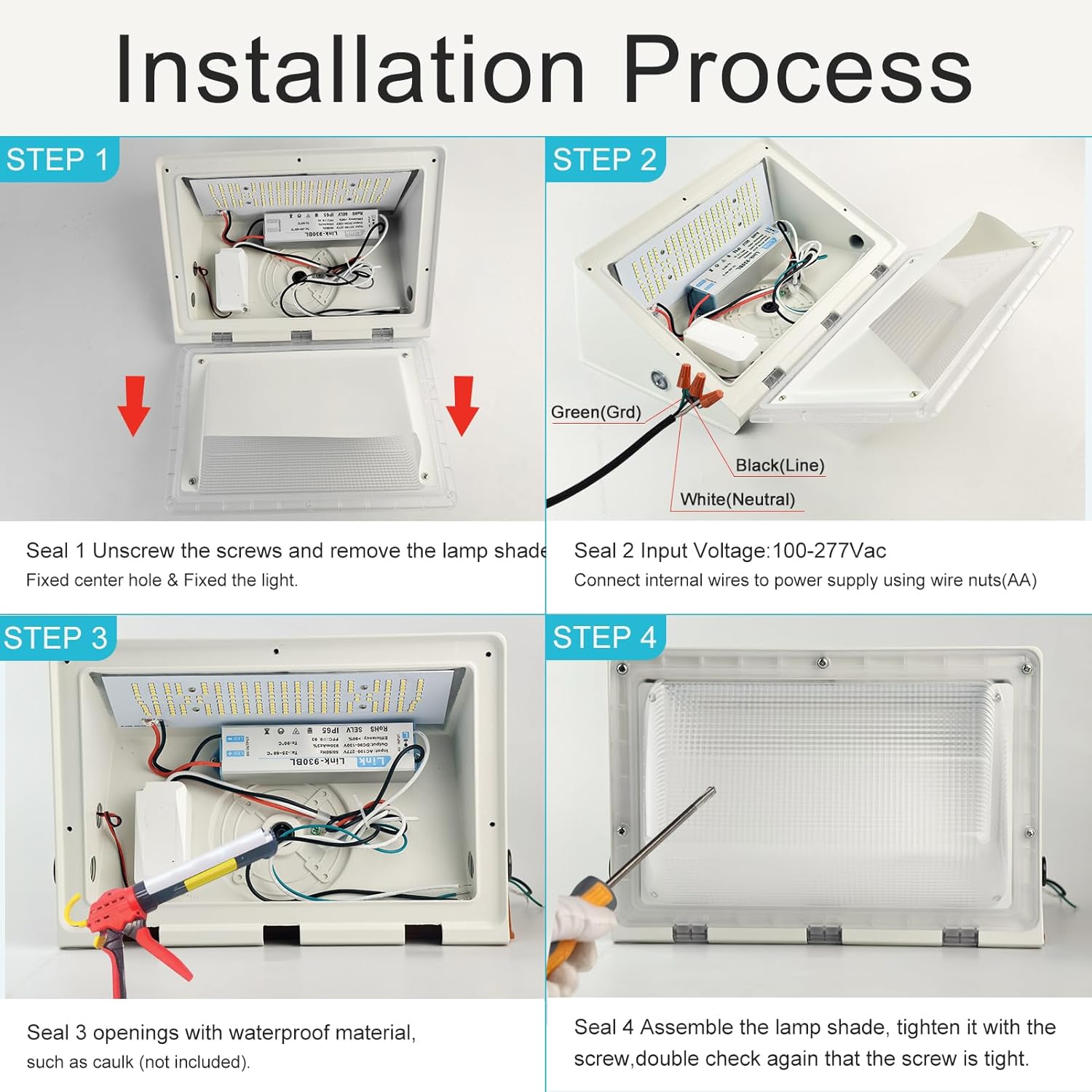 Easy hands-free installation, front open cover design, fixed the light before the lamp wiring. 100-277V Commericial Grade, stable and avoid yellowing.