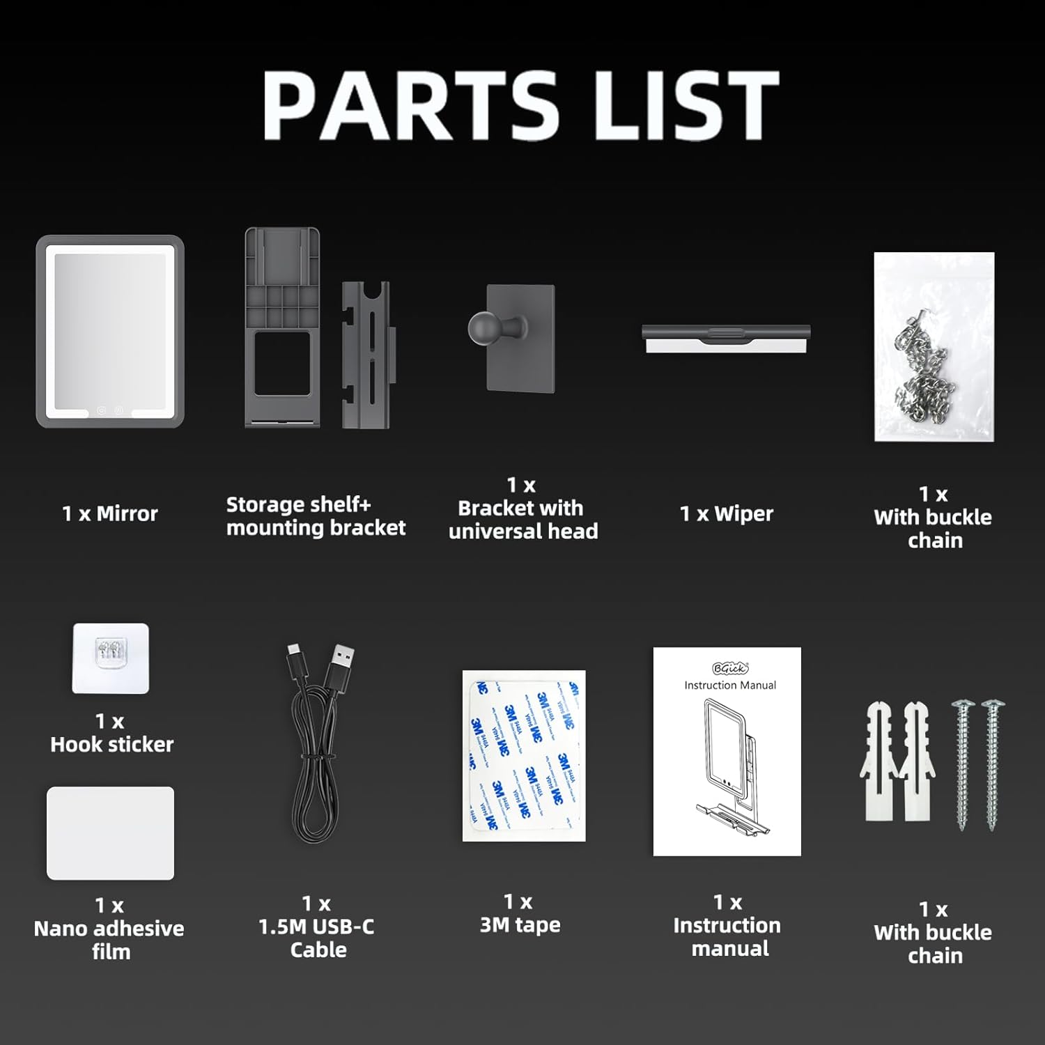 3 COLORS DIMMABLE LIGHT: This anti-fog shower mirror has 3 colors lighting – cold light, natural light, warm light, suitable for different occasions. Short press on/off (to change the light color) Long press the button (brightness dim or brighten) has a memory function that remembers the last set brightness and color mode.
