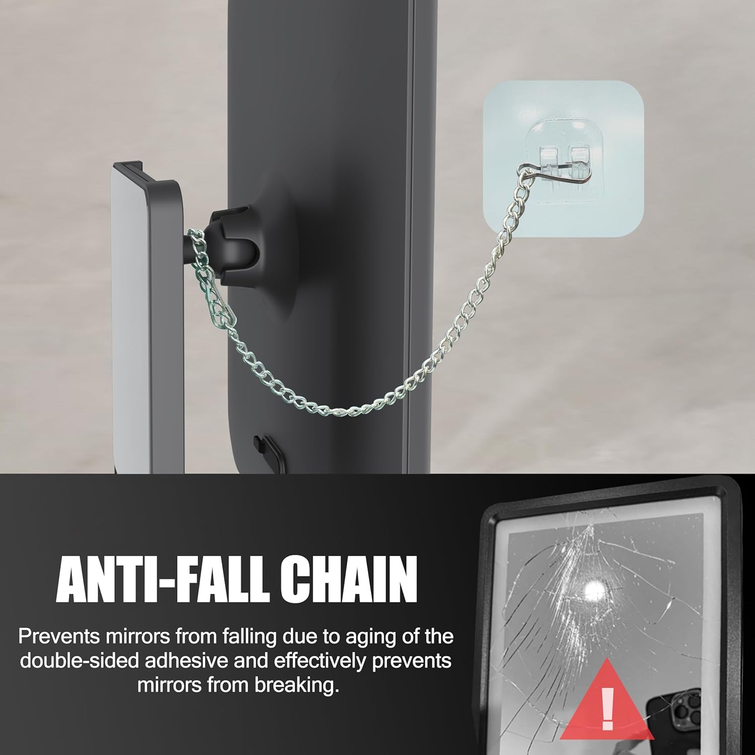 Upgraded anti-fog shower mirror: shaving mirror in the original basis of upgraded to join the 360 ° rotating direction, a larger area, and increased safety fall device, in the protection of the mirror at the same time more secure!