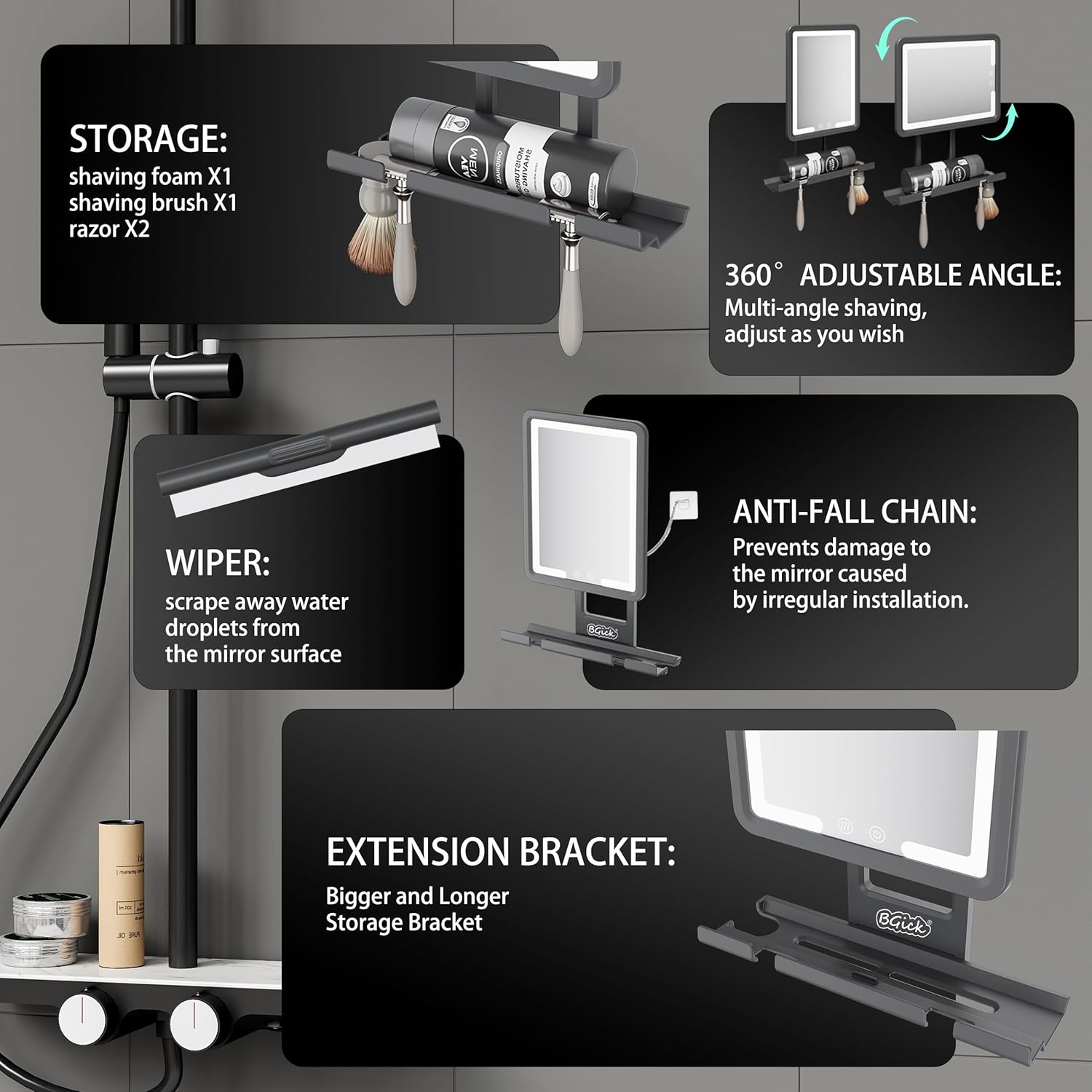 Customers find the shower mirror works well, with one mentioning it’s perfect for both in-shower and out-of-shower use. Moreover, the anti-fog feature effectively prevents fogging, and customers appreciate its sturdy adhesive that stays firmly in place. Additionally, the brightness is easily controlled, and customers find it super easy to install with simple-to-use buttons. The mirror is ideal in size, serves as a space-saver, and features a rechargeable battery that lasts a long time.