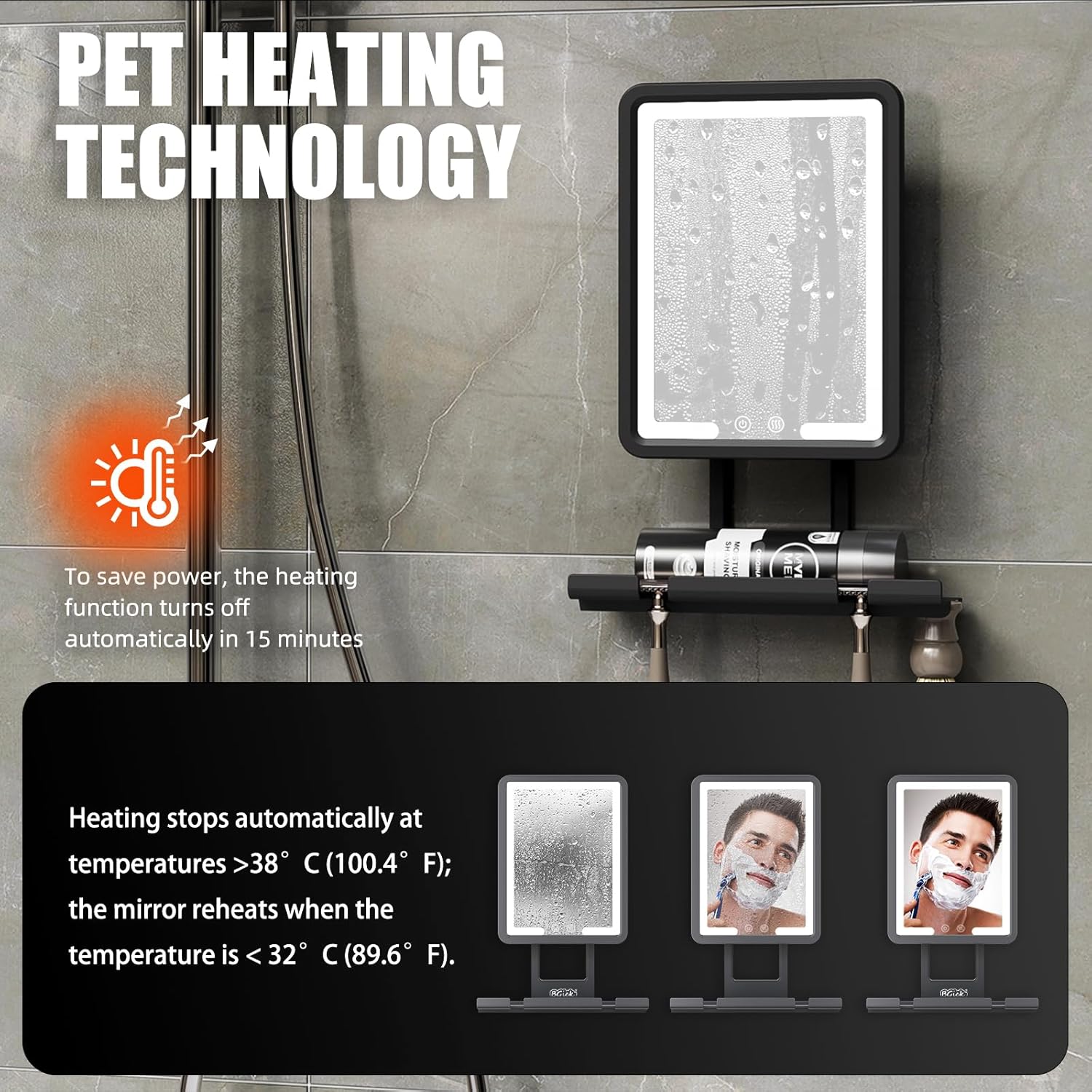 RECHARGEABLE HIGH CAPACITY BATTERY: The shower anti-fog mirror has a built-in 5000mAh rechargeable lithium battery, equivalent to 20 AA batteries, and the heating function is intelligently protected by automatically shutting off after 15 minutes of being turned on.