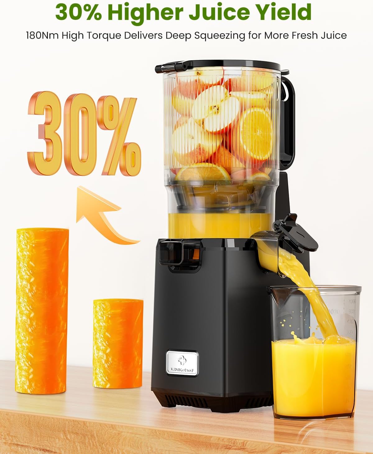 HANDS FREE: Juicers whole fruit and vegetable with the 1.8L chamber, allowing you to effortlessly handle large batches ENSURE YOUR SAFETY: The juicer machines stops working when the lid open, which is safer for children. NOTE: Keep the cover open during installation or you can not assemble the chute correctlywithout the need to feed ingredients one at a time. Ideal for weekly prep or family servings- just load, juice, and repeat