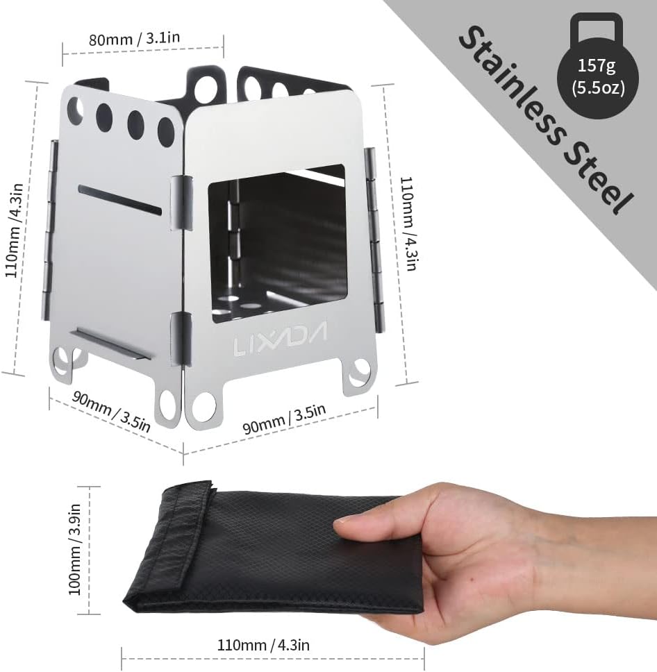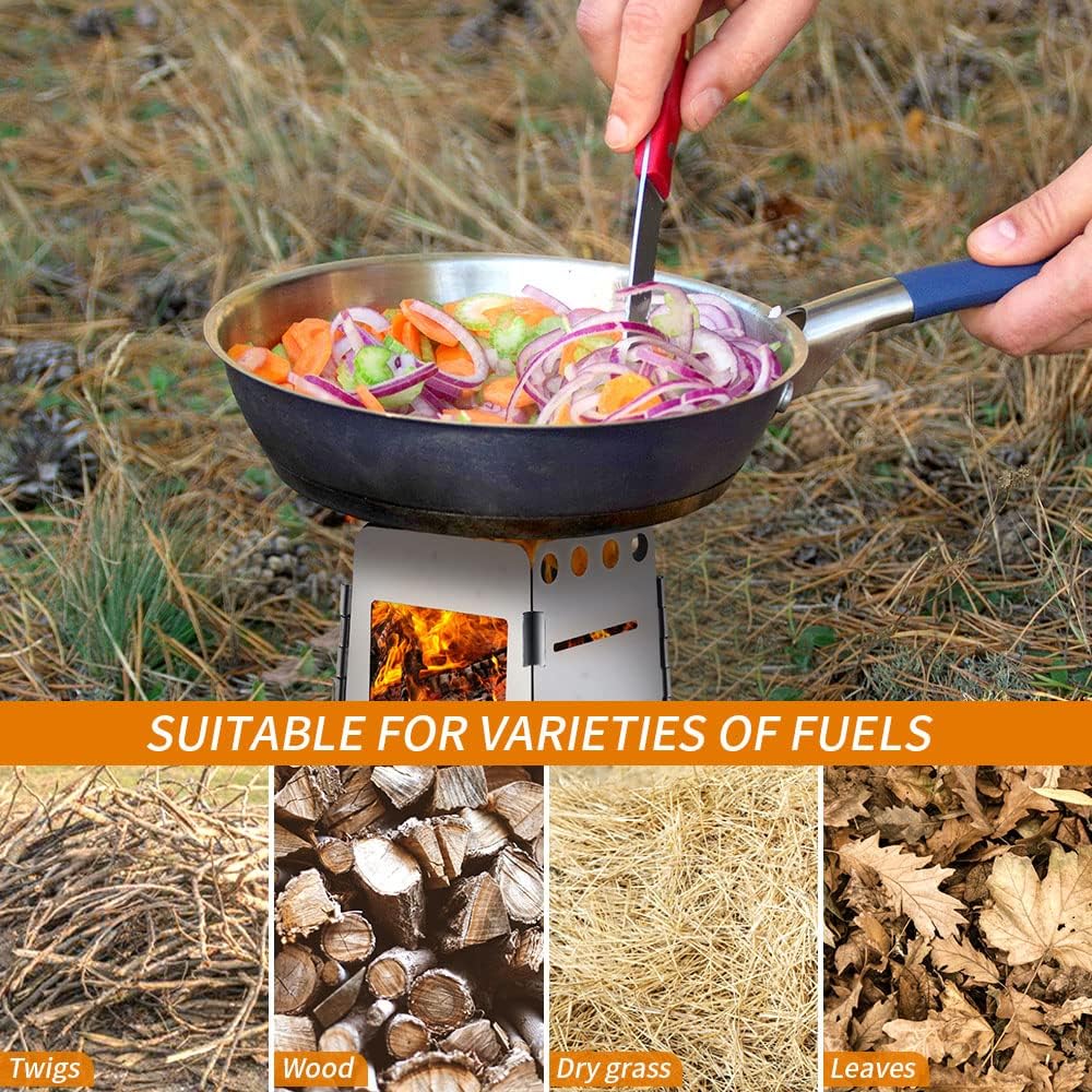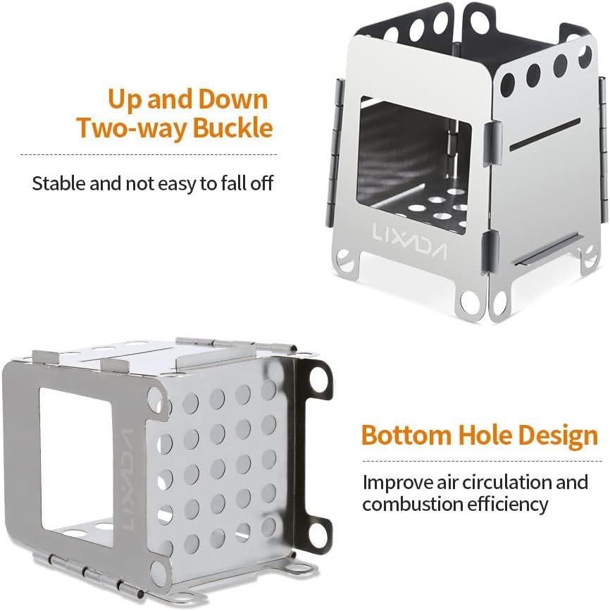 【VERSATILE】This amazing foldable camping stove is a must-have tool for the outdoors, allowing you to start grilling wherever you set up your camp. Perfect for camping, hiking, backpacking, picnics, barbecues, outdoor survival and adventures. Note: Wood stove only, items such as pots in the picture are not included.