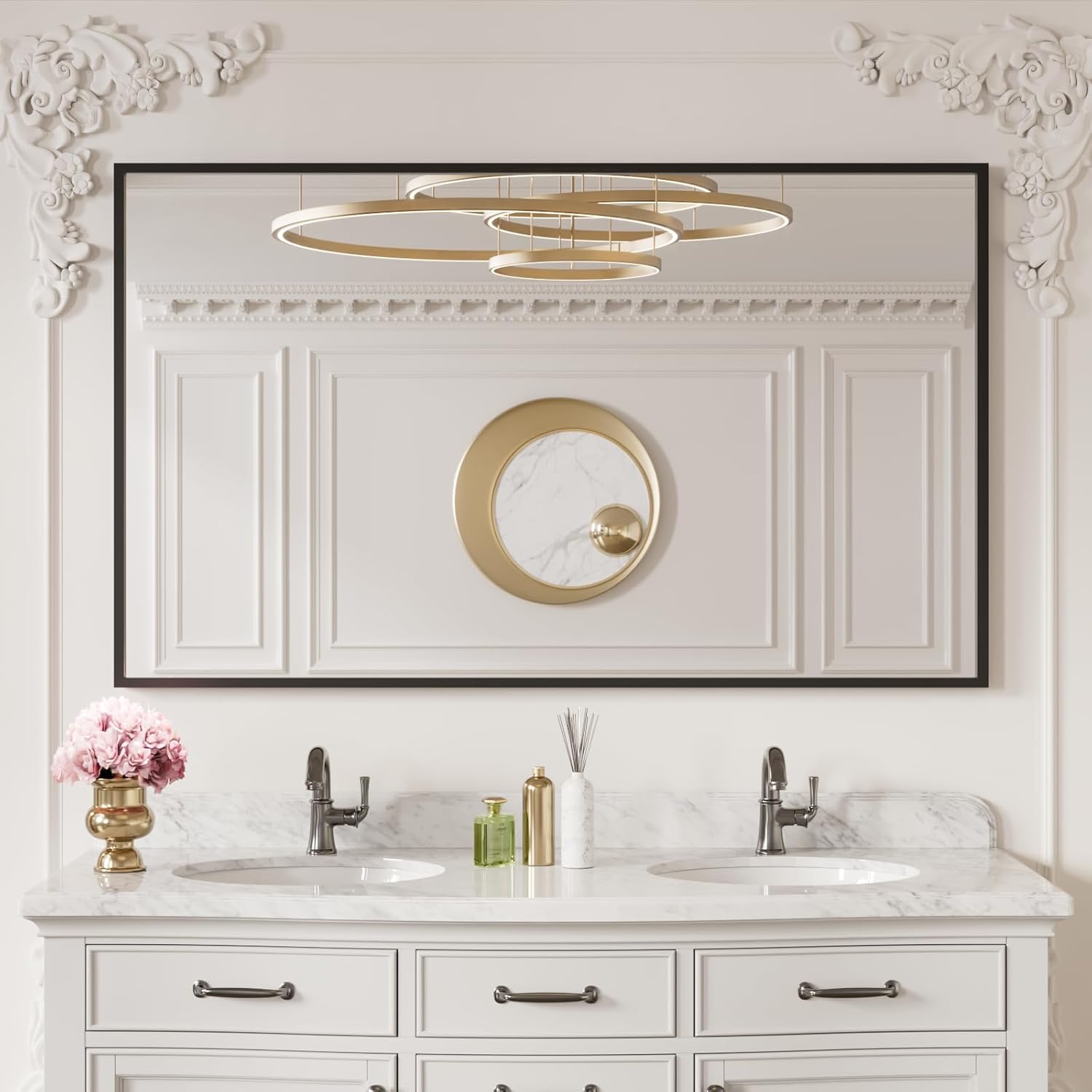 【Clear Reflection & NO Distortion】: LOAAO black rectangle mirror is designed with HD float glass to deliver a clear reflection with no distortion. clear lines, simple modern design.