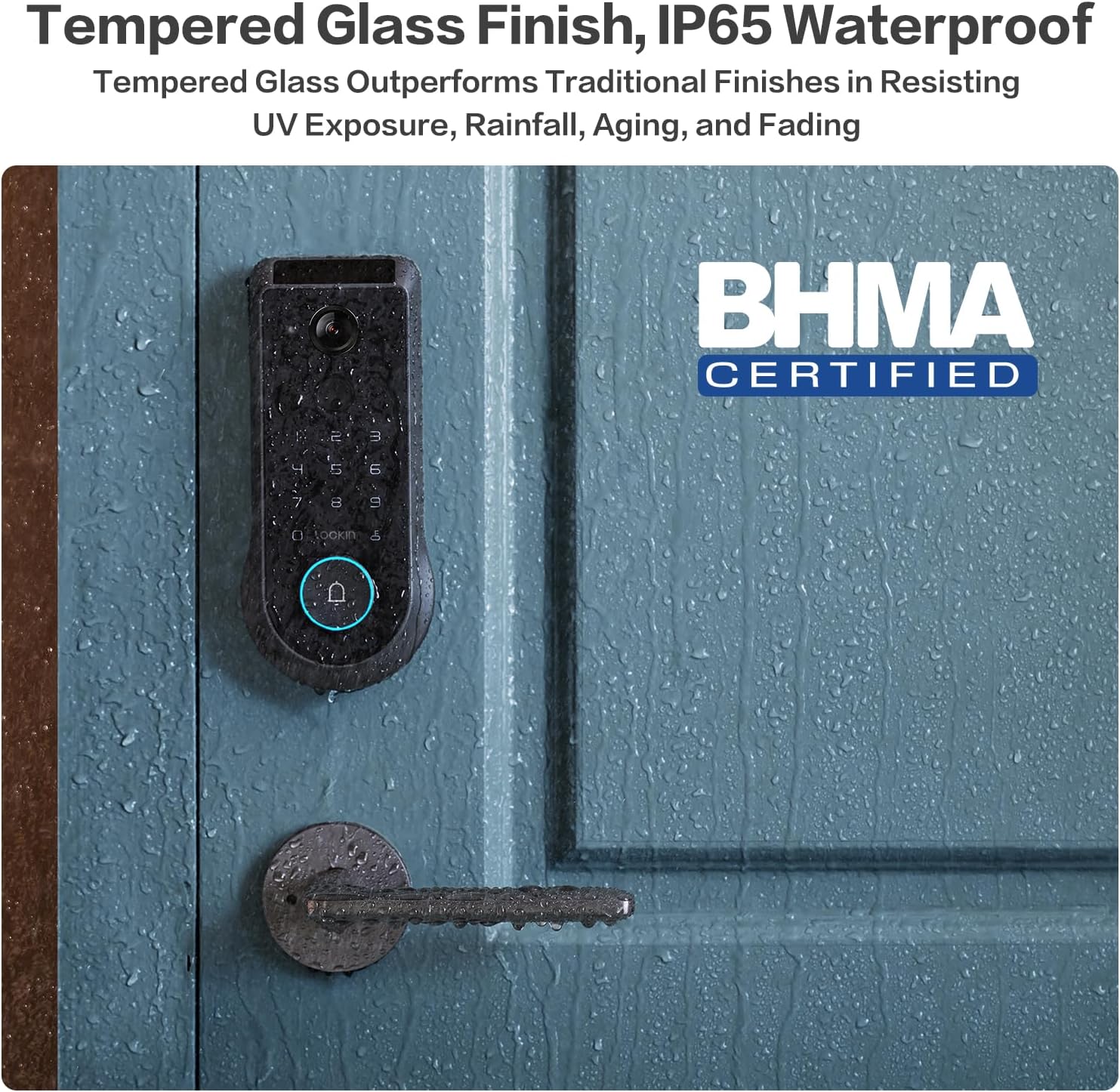 [Tempered Glass Finish: Weather-Proof & Fade-Resistant] Elegant, weatherproof finish of premium tempered glass, resists scratches, fingerprints, and fading, maintaining its sleek appearance through years of daily use. IP65 waterproof and BHMA Grade 2 certified with 10-year mechanical durability. Functions perfectly from -22°F to 158°F in any weather.