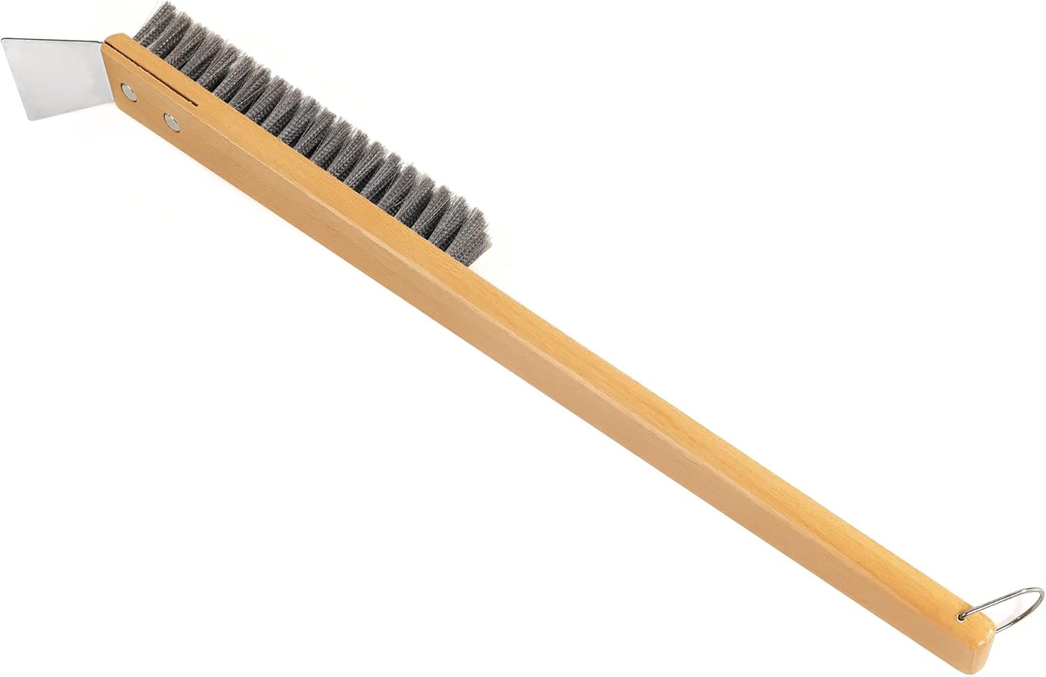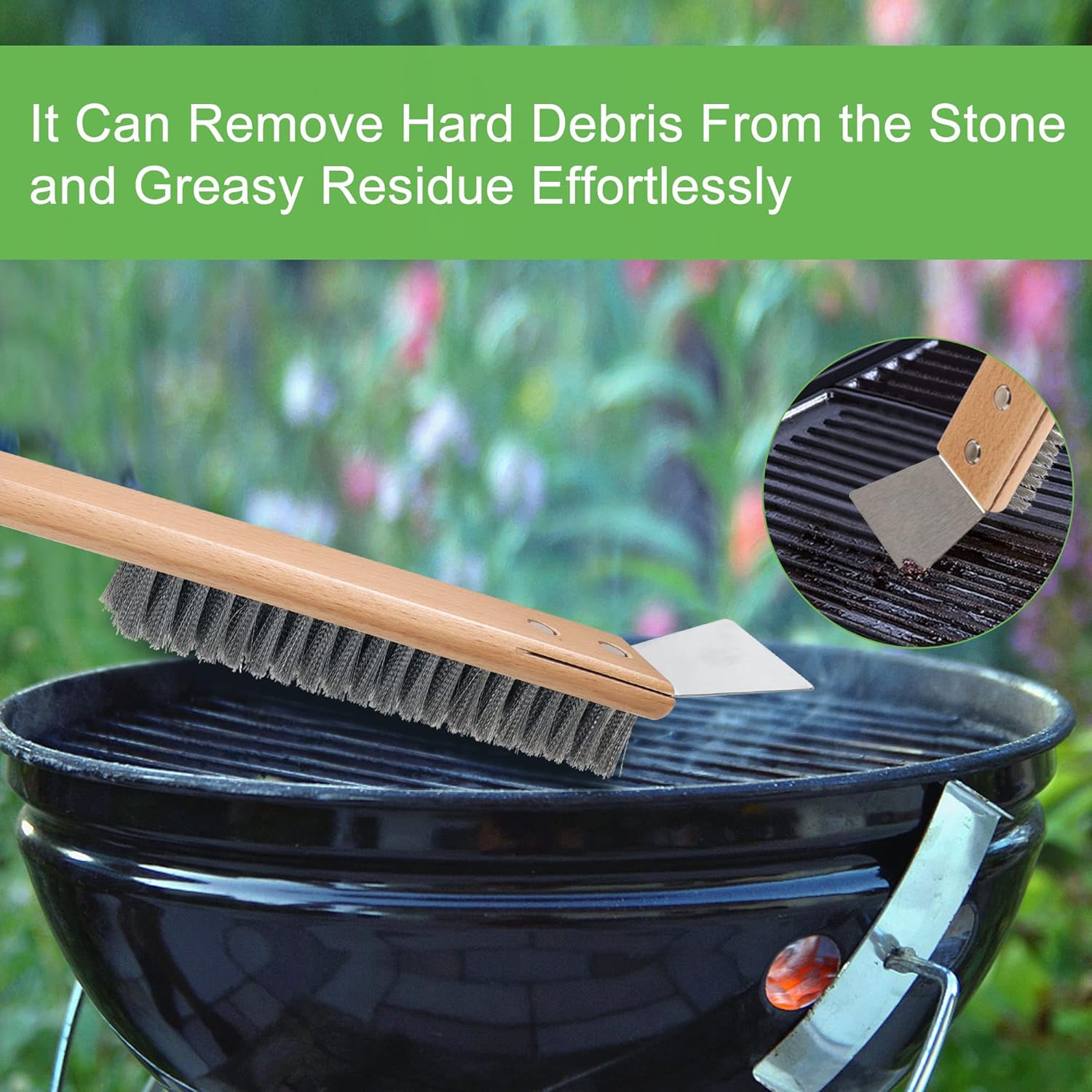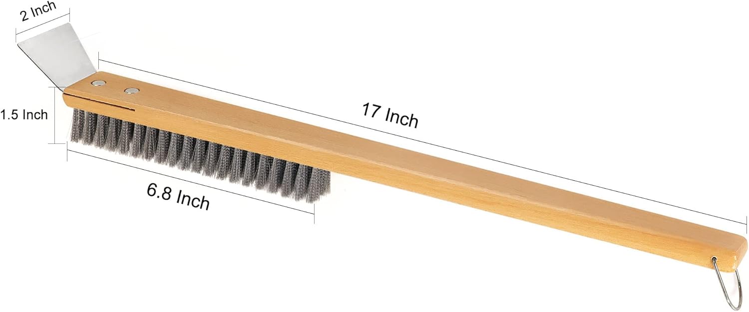 SUITABLE SIZE:The pizza stone brush has an overall length of 18.5 inches, with a brush length of 6.5 inches, making it suitable for most common outdoor ovens.The hands can be at a safe enough distance from the oven.