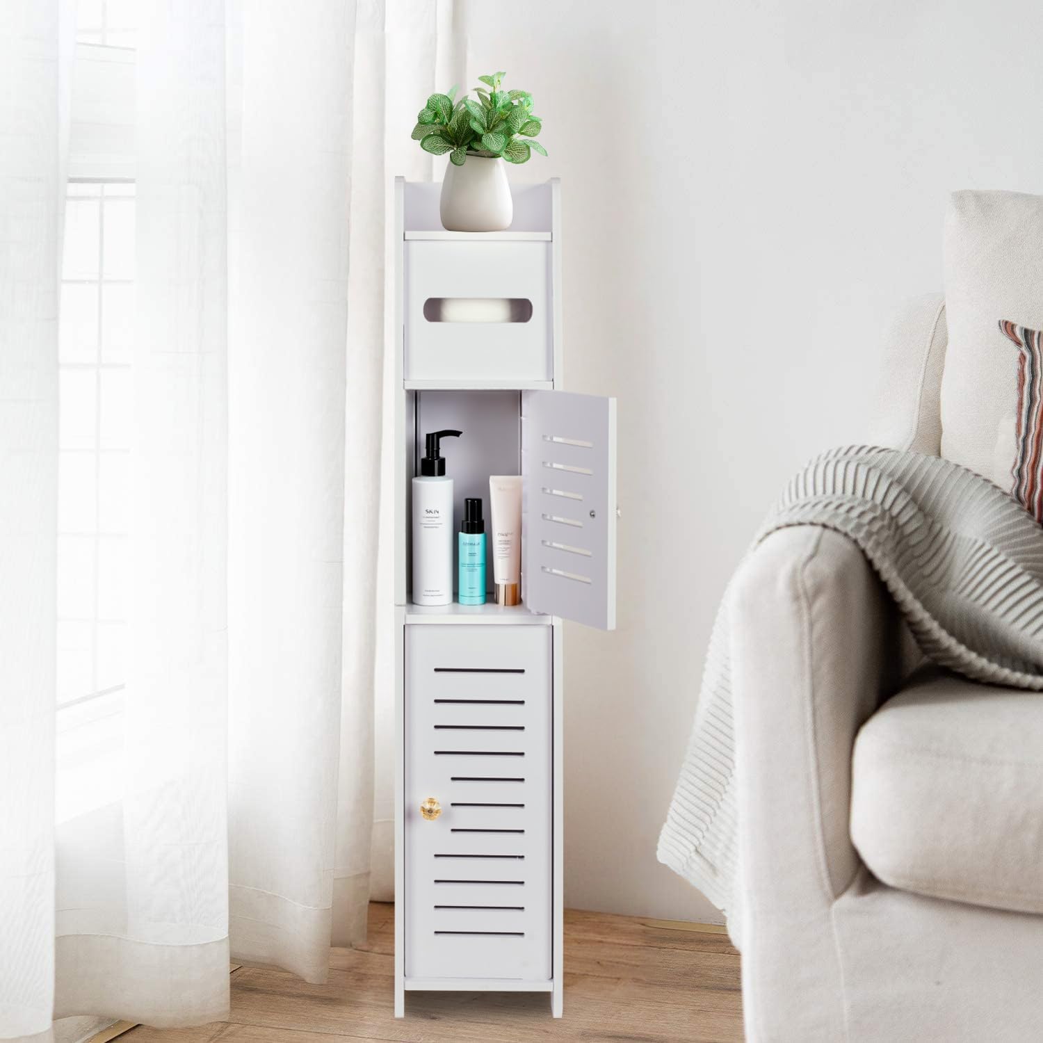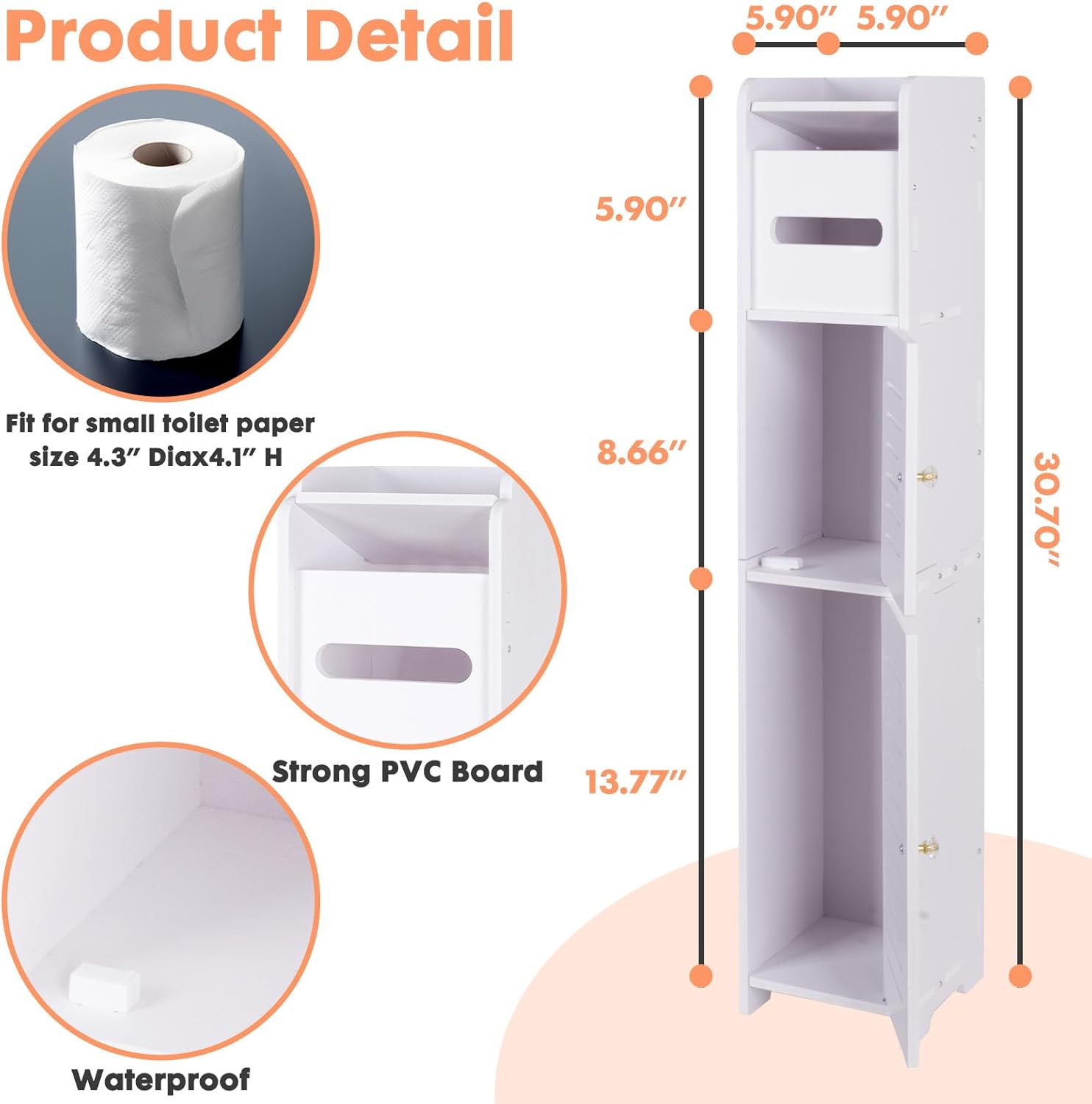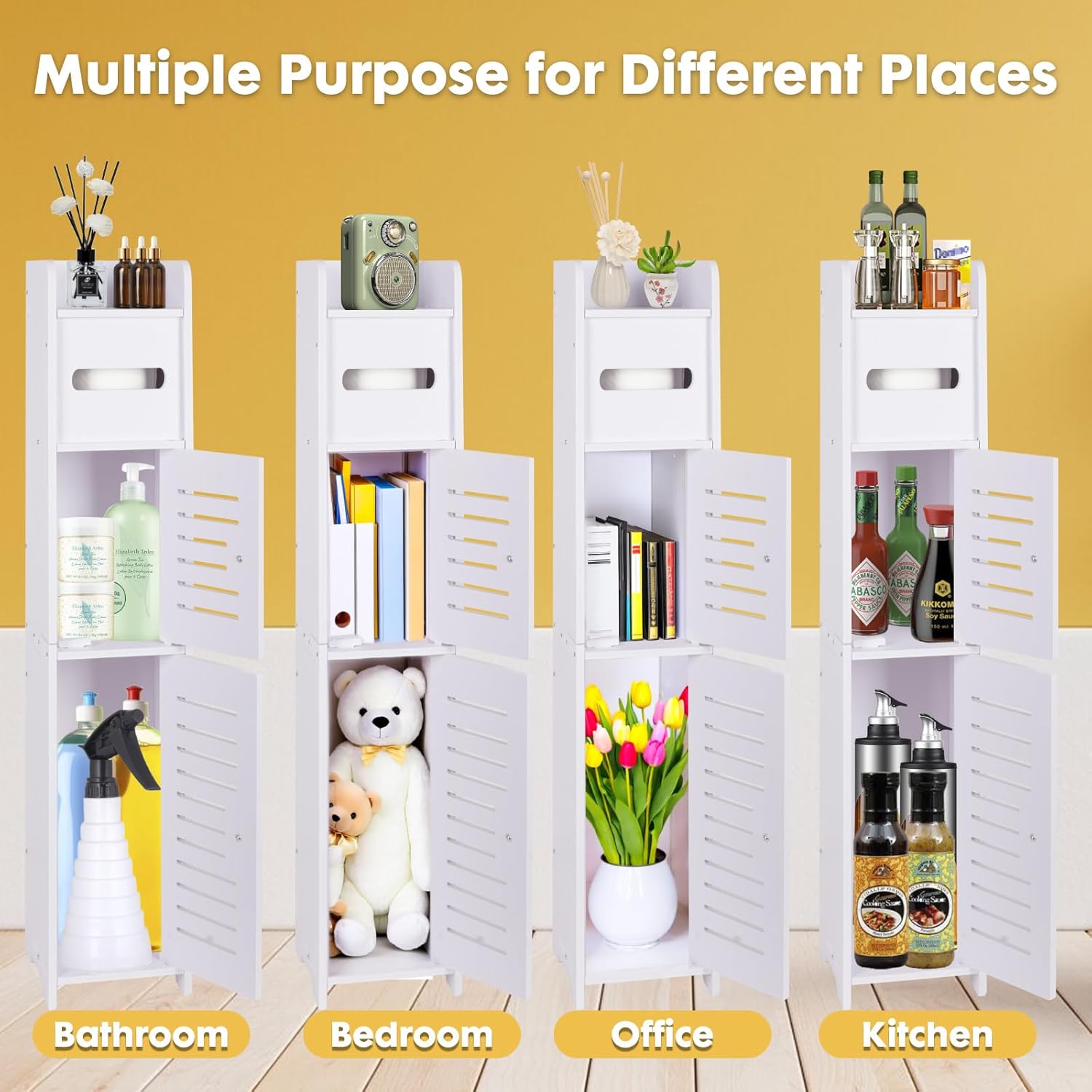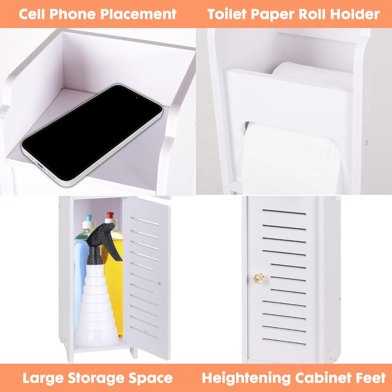Toilet Paper Holder Stand for Small Space: The toilet paper storage cabinet with slim designed, perfect for most of small area in your bathroom, home, office to storage toilet paper, wash supplies, and other small or slim items to meet different storage purpose
