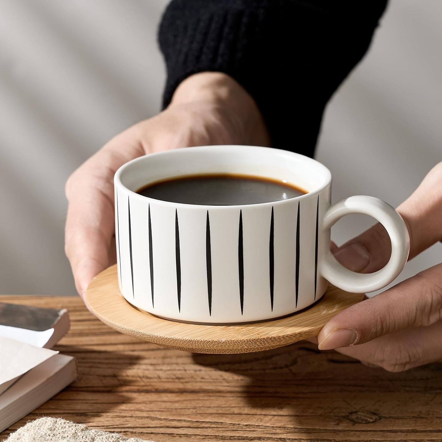 【Classic Espresso Pattern】➤With unique stripes pattern design, our cups will be a great addition to your table.Simple design and won’t be out of date.It’s a perfect gift for your friends and family on Housewarming, Wedding party, Mothers’ Day, Fathers’ Day, Christmas and New Year’s Day.