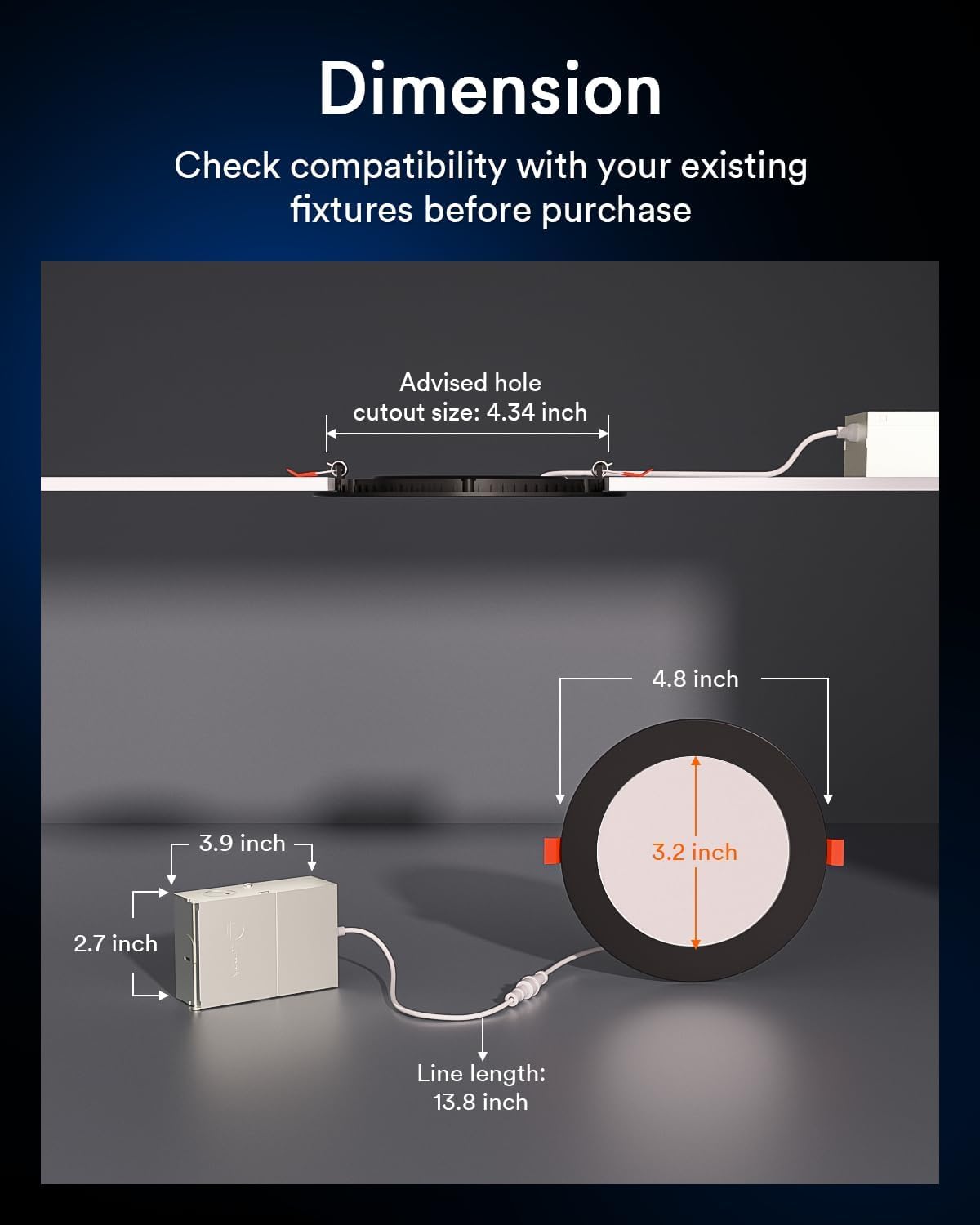 Easy Installation & High Quality: The ultra-thin, wafer downlight design fits into limited ceiling spaces. ETL certified for safe insulation contact. Simply cut a 160mm hole, connect the J-box, and secure the light with spring clips—safe, quick, and perfect for both retrofit and new décor