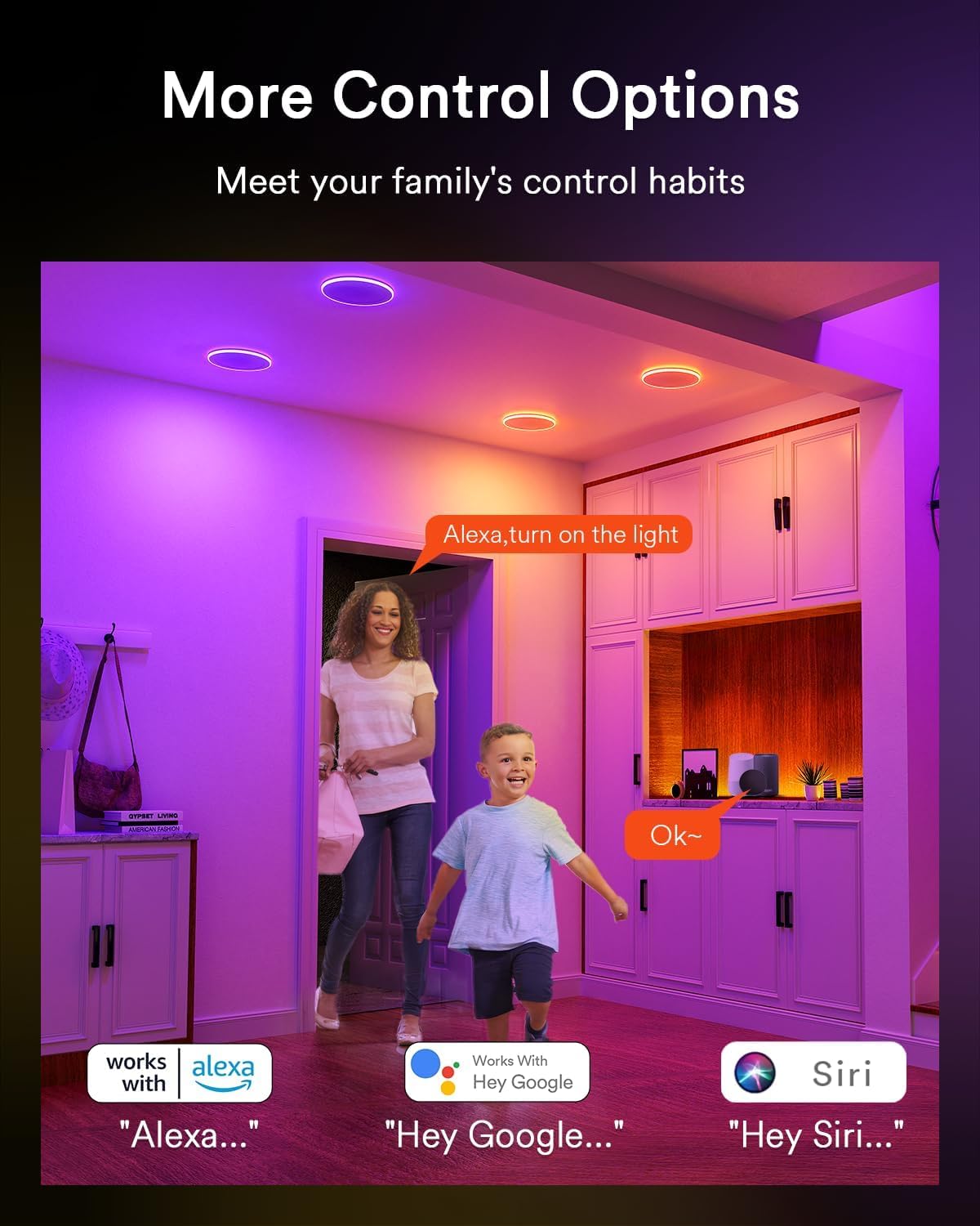 Multiple Control Ways: There is more than one way to control Lumary LED recessed lights, including Lumary App (but NOT support Lumary BT Remote), Alexa, Google Assistant, Siri (Not support Homekit, achieve siri control through Lumary App automation function). You can remotely modify your home lighting from anywhere you are, gone are the days when you would patrol around your household to ensure all your lights were off.( all Lumary smart lights are NOT work with a dimmer switch! )
