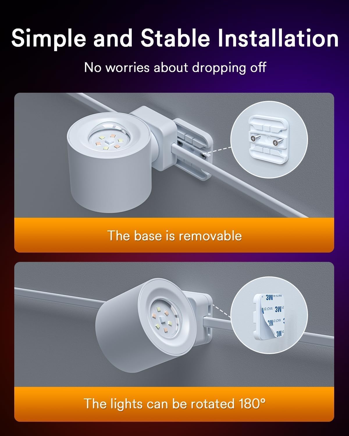 Easy Installation: The slide rail structure connection between the lamp body and the base of these LED wall lights can be easily separated and reorganized, and can be easily fixed on any surface using the included 3M adhesive and screws, which can easily adapt to wood, fiber, cement or metal walls