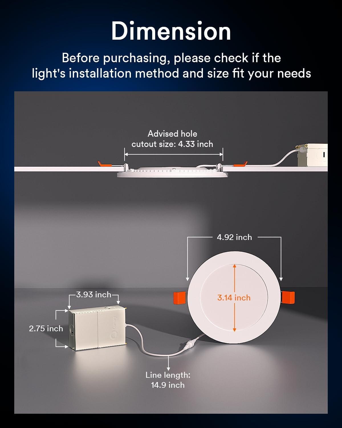 【ETL & FCC Listed】Lumary smart recessed light Pro 4 inch are ETL-listed and FCC compliant, which means they are both energy efficient and reliable. Lumary smart recessed lighting has 25000+ hours long lifespan