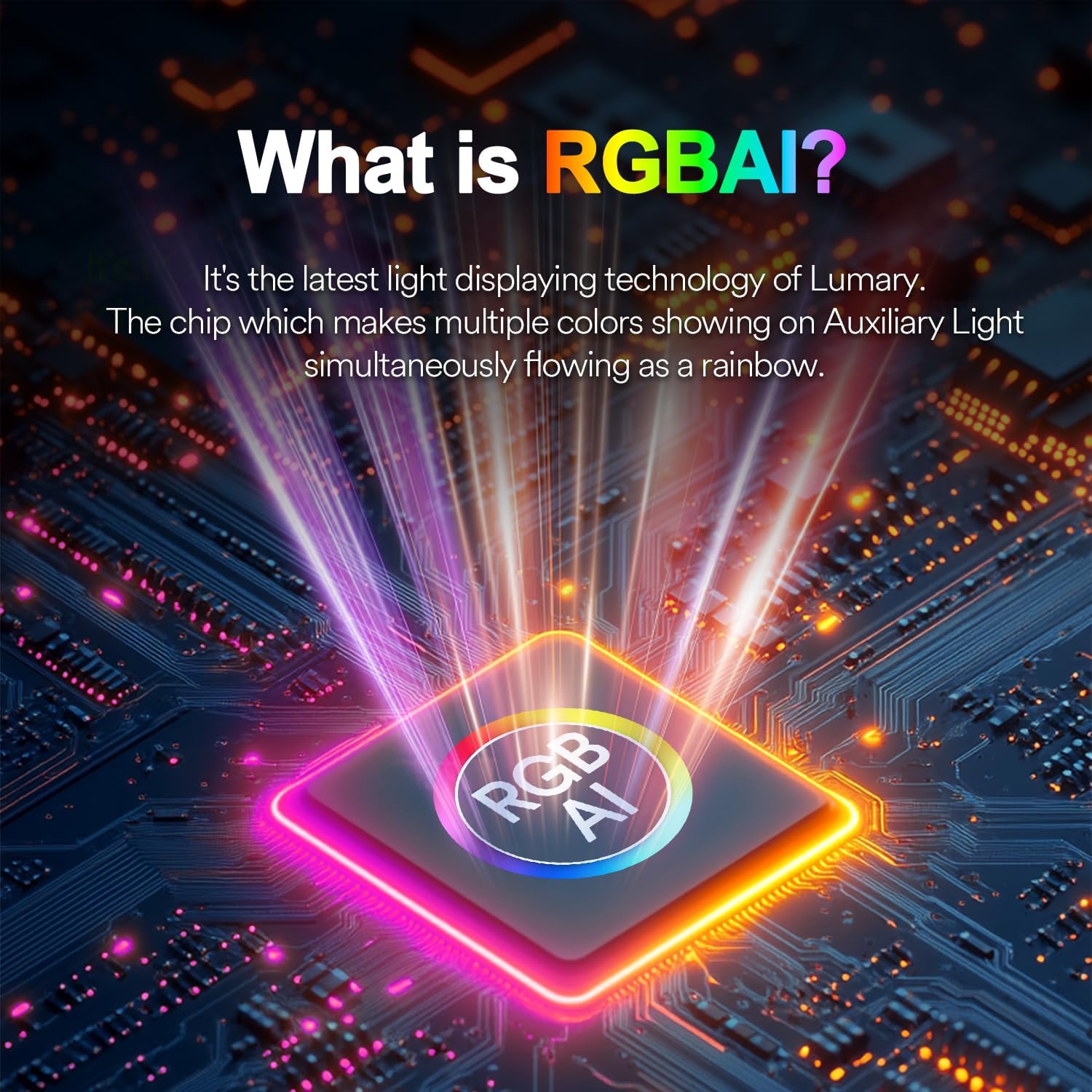 It’s the latest light displaying technology of Lumary. The chip which makes multiple colors showing on Auxiliary Light simultaneously flowing as a rainbow.