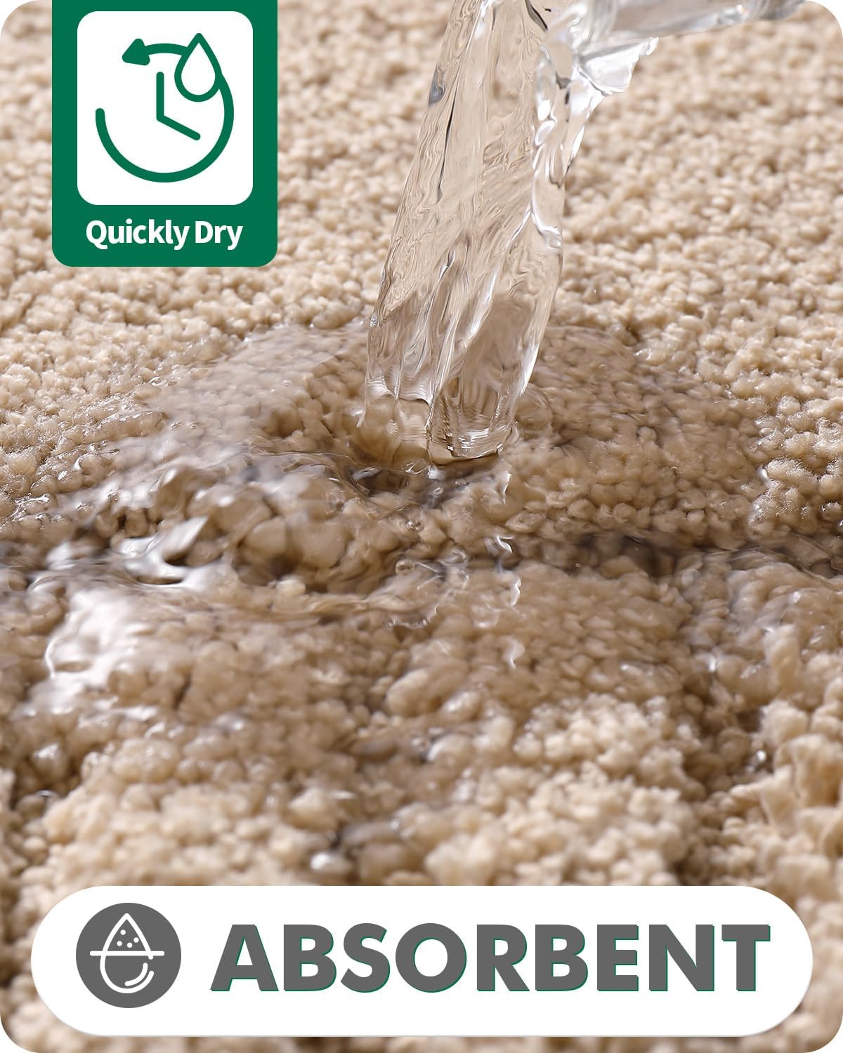 Absorbent and Quick Dry: Made with thick, high-density microfiber, quickly and efficiently traps excess water from baths, showers, and sinks. This not only protects your floors from water drips but also keeps your feet dry in no time