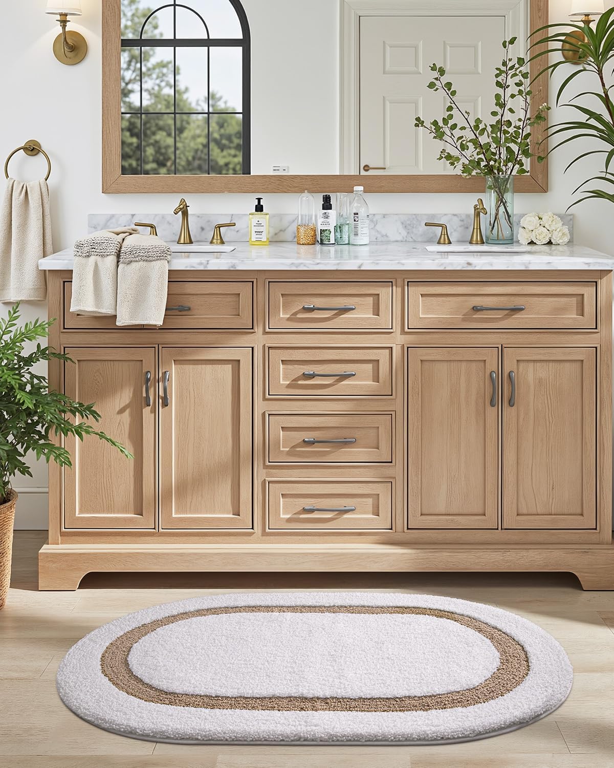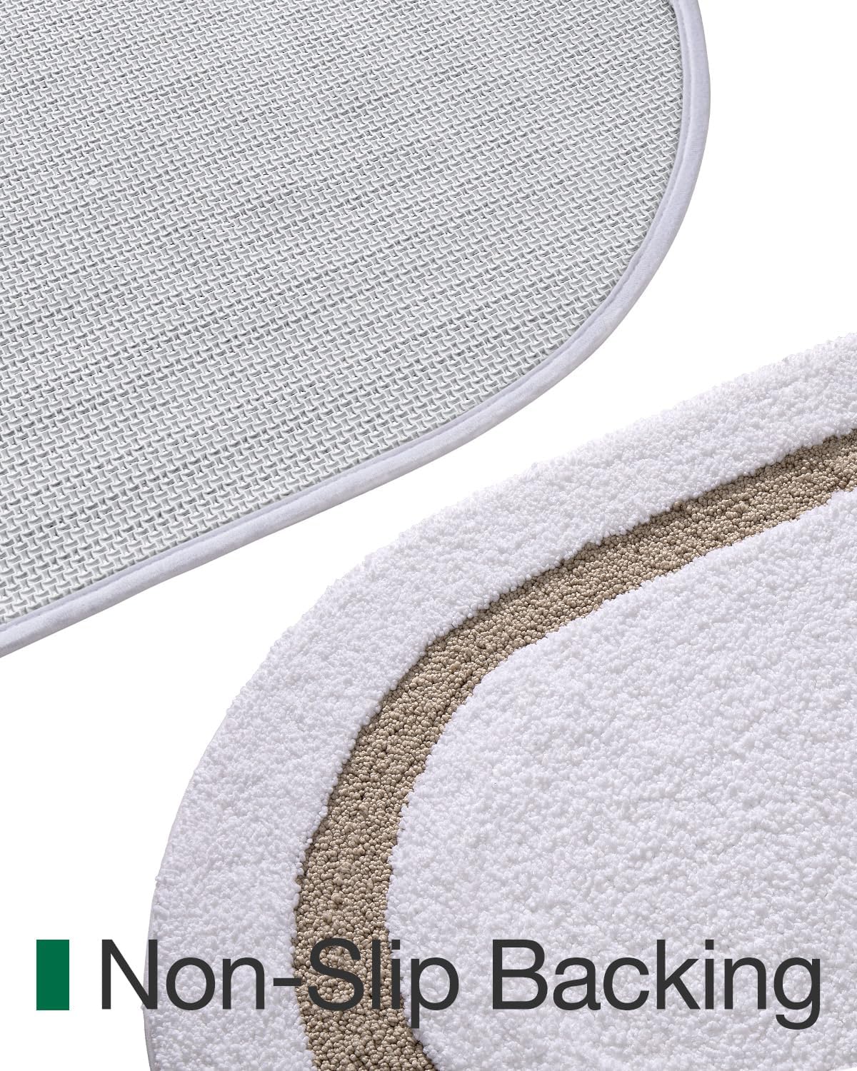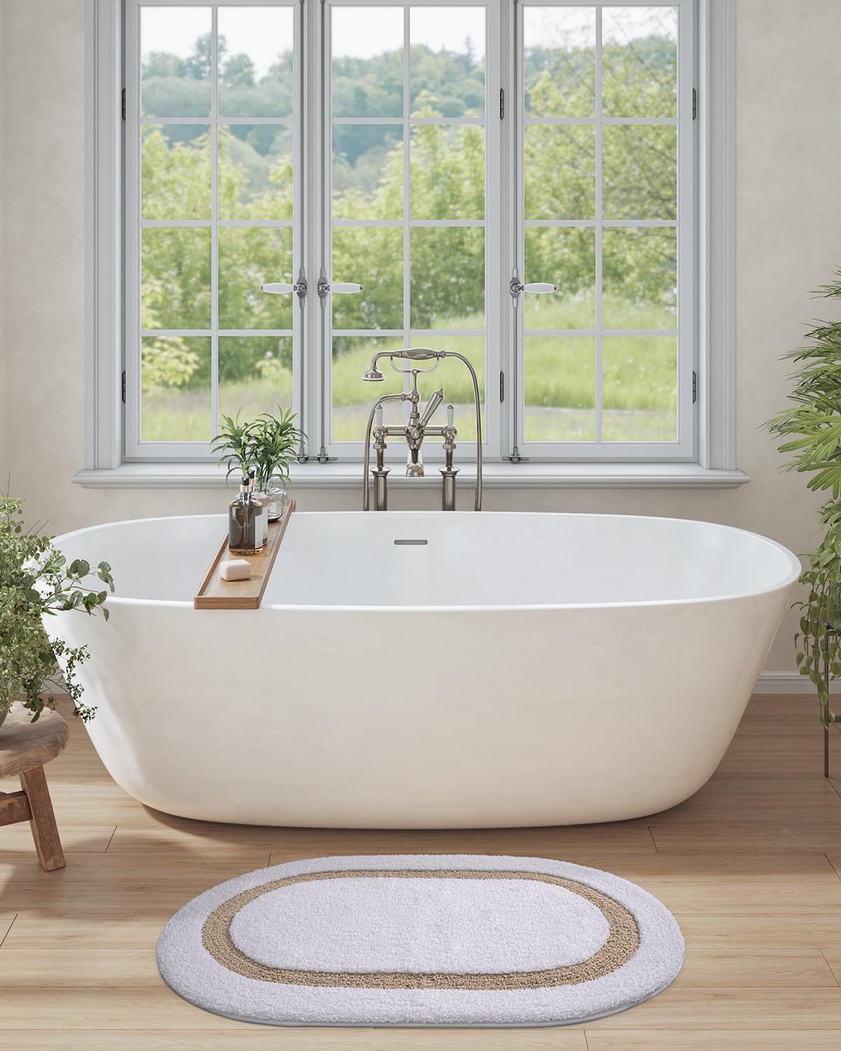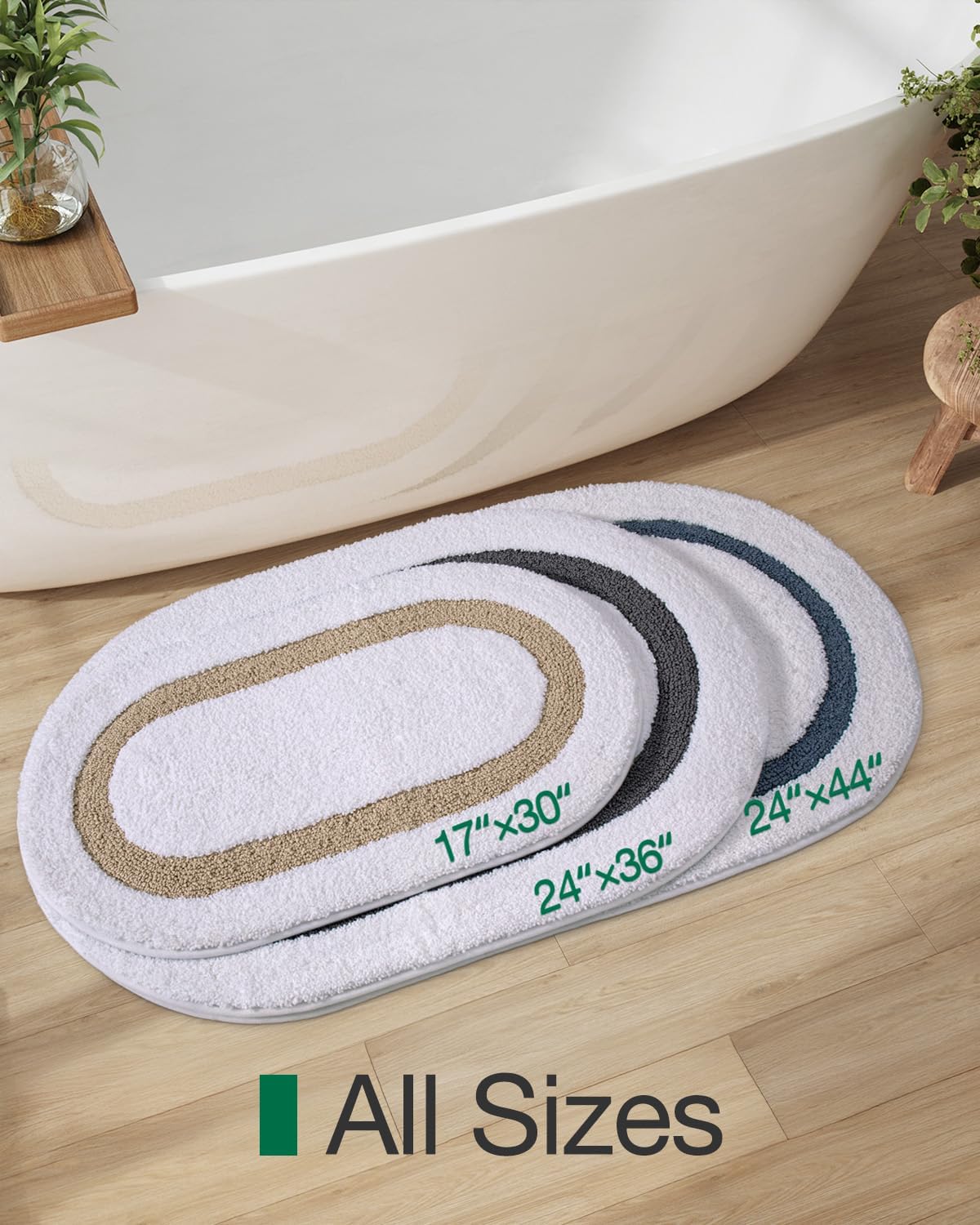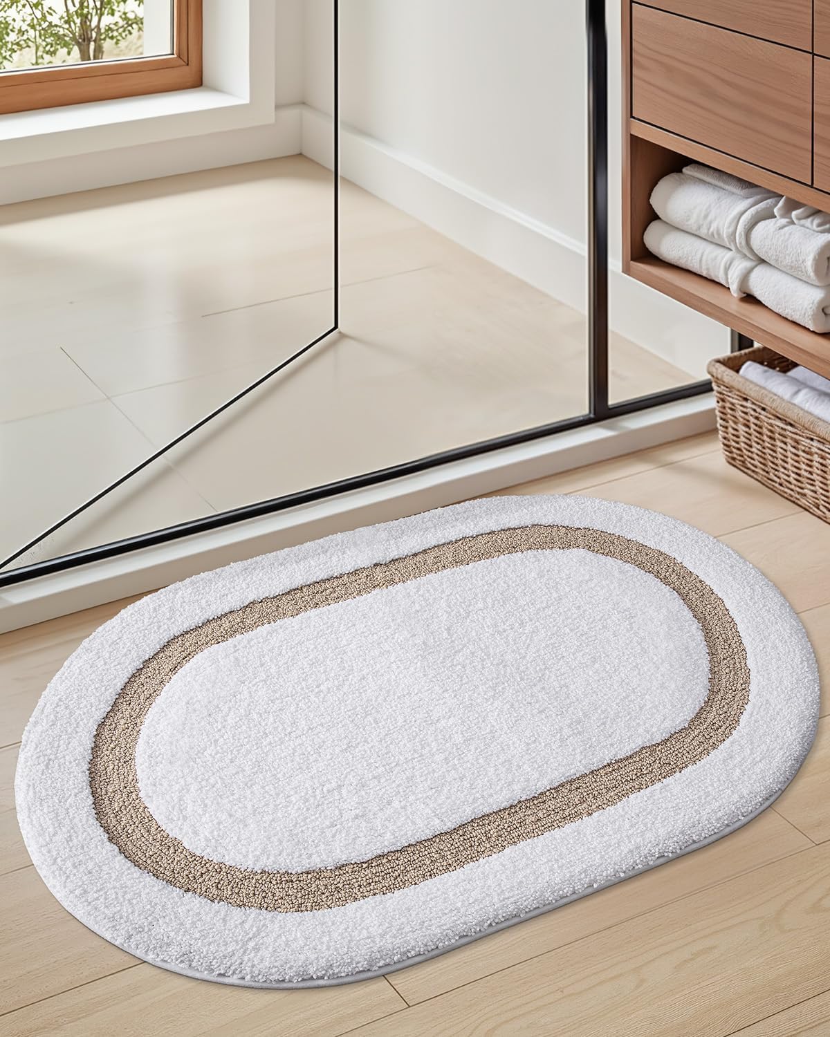 【Stylish & Versatile Design】: This bathroom mat boasts an exquisite oval design,featuring a predominantly elegant white seamlessly integrates with various bathroom decors,adding a touch of fashion and taste while maintaining its practical functionality