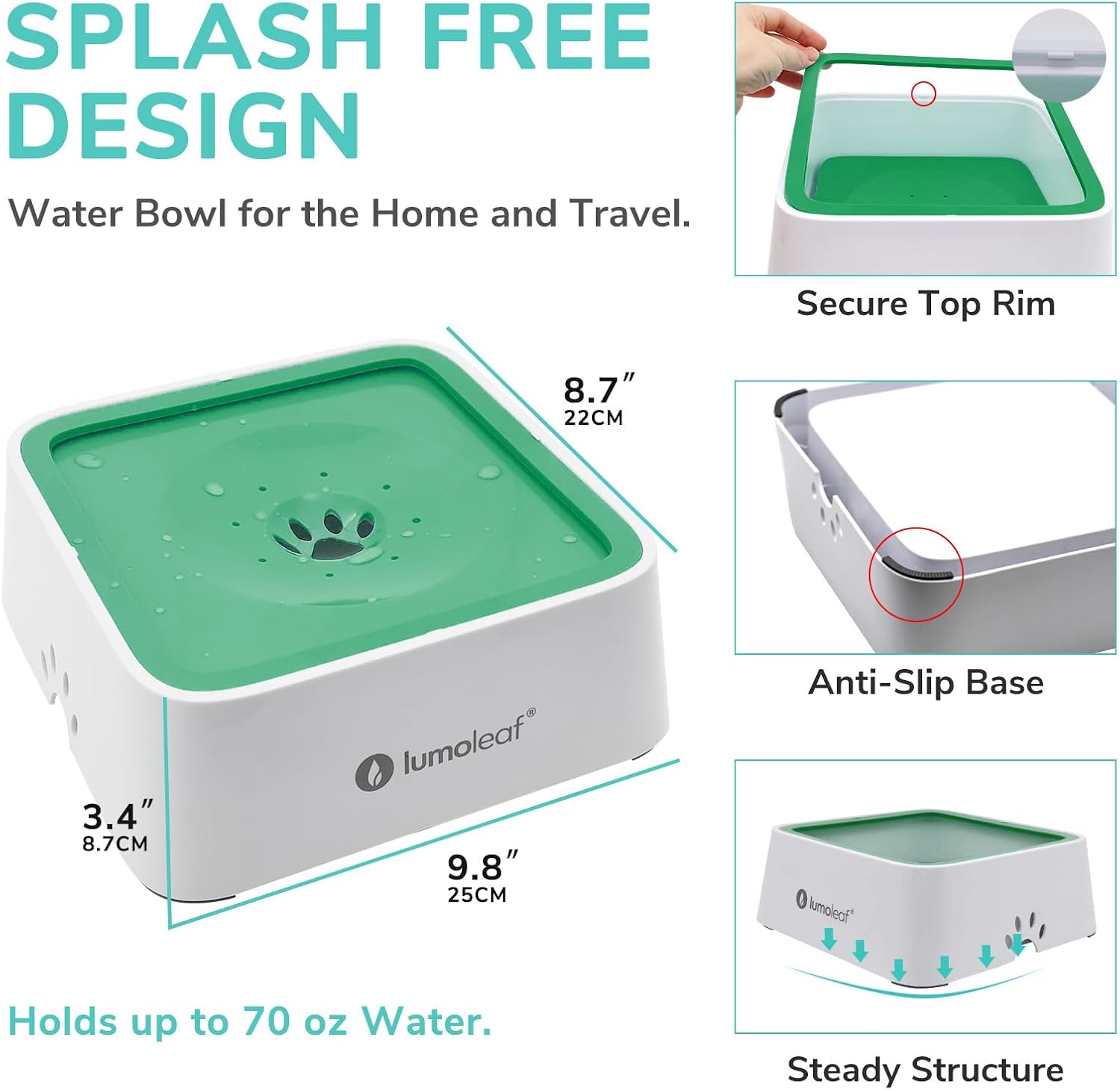 ❤ EXTRA LARGE NO SPILL DOG WATER BOWL by LumoLeaf. The upgraded dog water bowl can hold up to 70 oz / 2L water. Easy to keep small-medium or large breeds hydrated the whole day. It is also ideal for multi-pets homes.