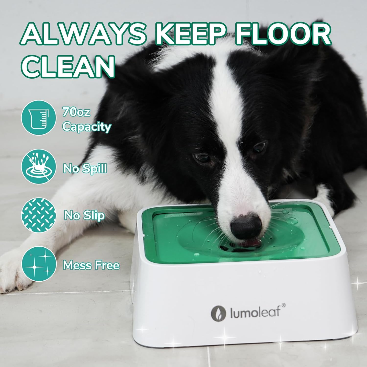 LumoLeaf No Spill Water Bowl for Large Dogs with Filter, 135oz/4L, Slow Feeder for Messy Drinkers, Drip-Free & Splash-Proof, for Multi-Dog Households. (70 fl oz Green)