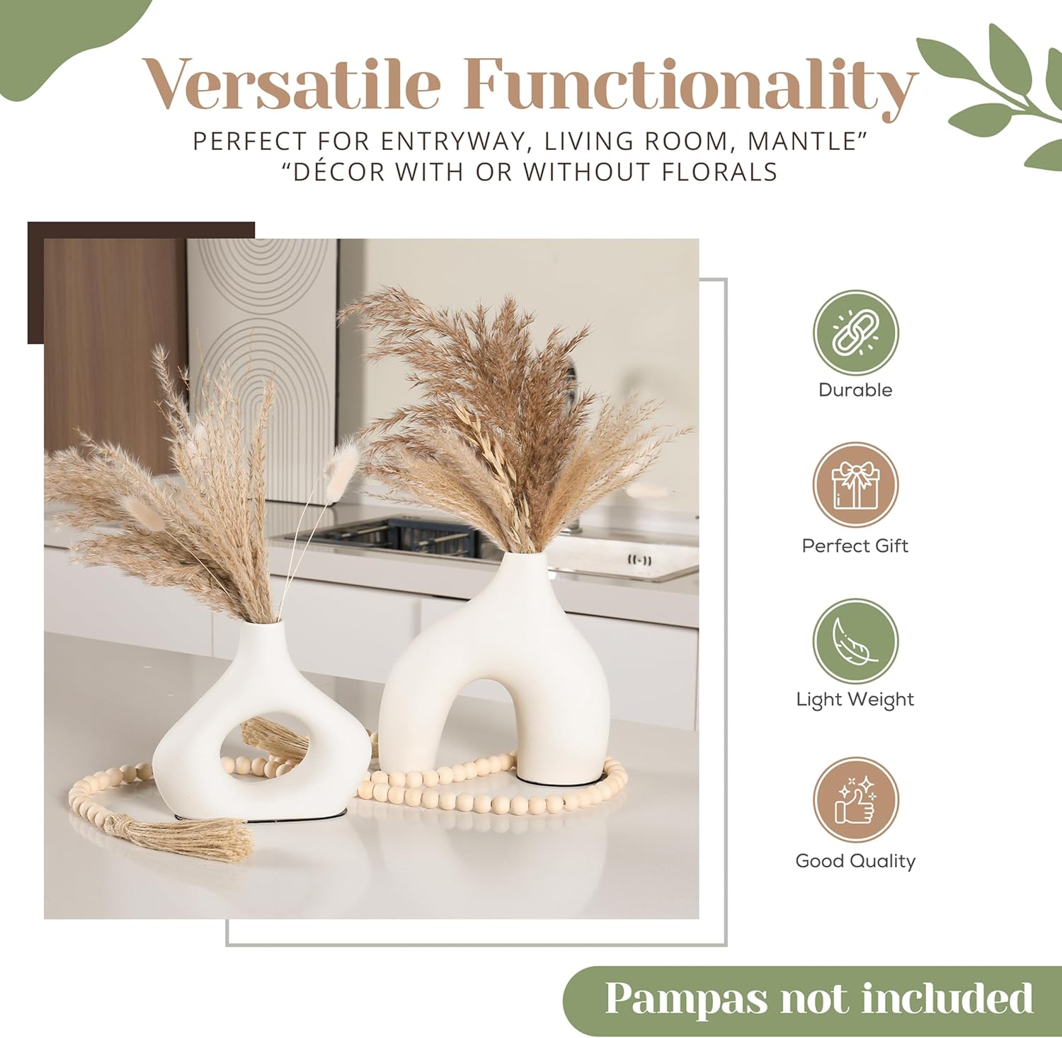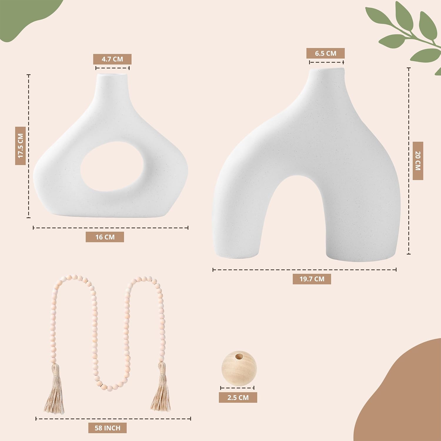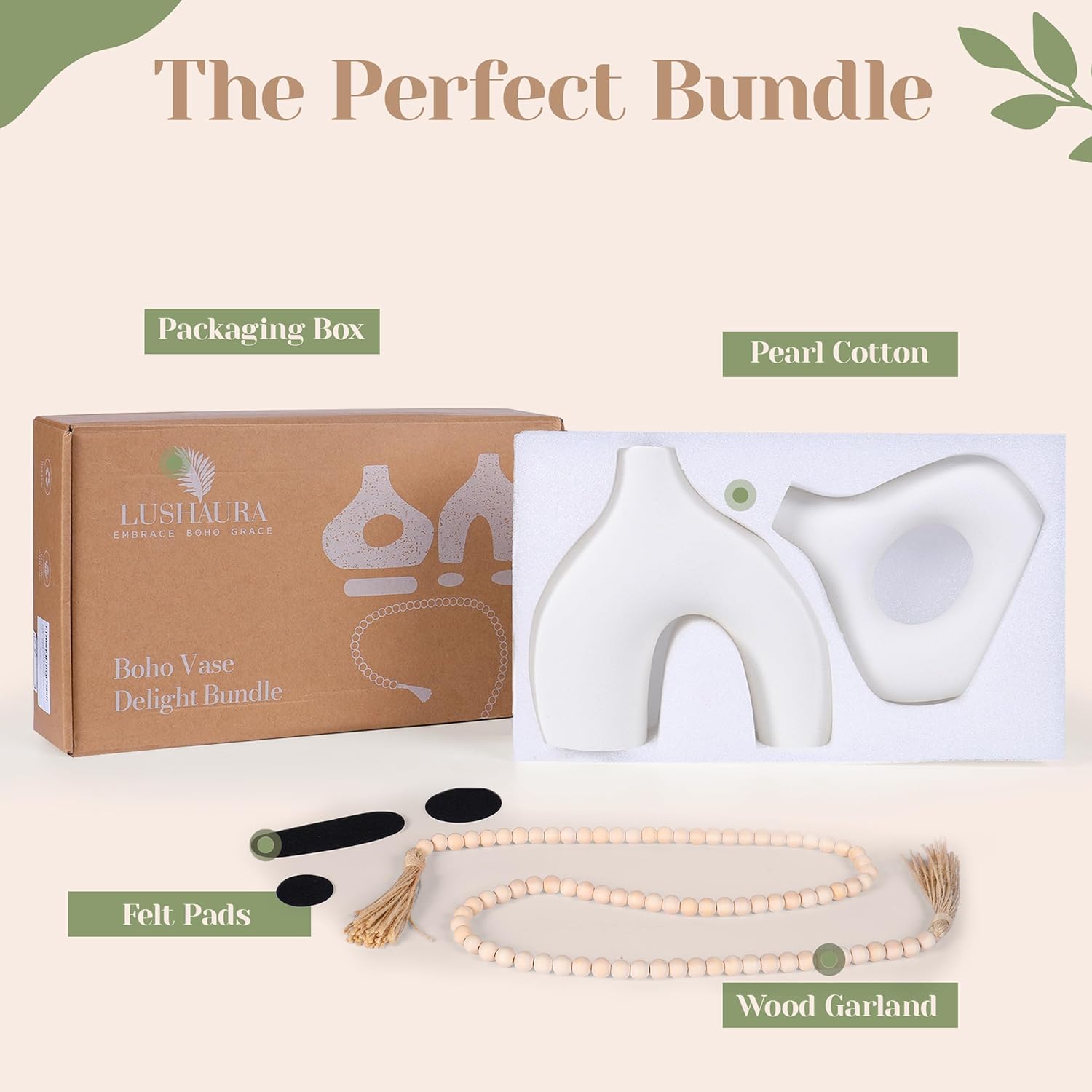 The Perfect Bundle: Our set showcases two distinct ceramic vases, perfect for a pampas grass vase, eucalyptus, or whatever your imagination dreams up. Paired with a 58-inch wooden beaded garland and protective felt pads, this bundle delivers exceptional value and unmatched aesthetic charm, making it ideal for modern home decor for living room spaces.
