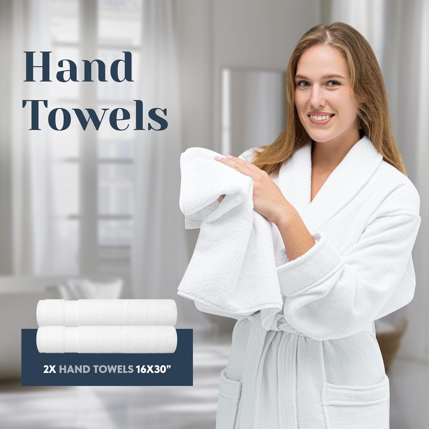 Luxury White Bath Towel Set of 8 Pieces – 100% Turkish Cotton Highly Absorbent Towels for Bathroom, 2 Luxury Bath Towels 700GSM, 2 Hand Towels, 4 Washcloths