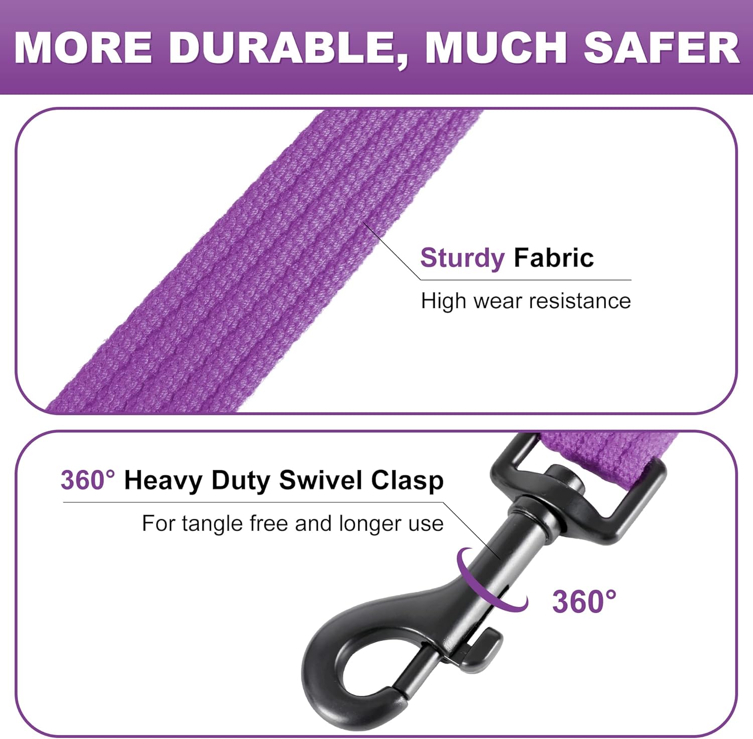 360°Tangle Free Hook Dog Leash Large Dog: An easy on and easy off Traffic Walking Lead,heavy-duty swivel metal hook to resist tangle and twist in use,allowing your dog to roam freely belong your side.