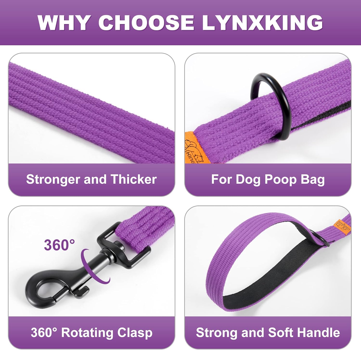Natural Material Dog Training Leash: lynxking heavy duty dog leash is made of high density natural fiber, gentle on hand, with strong toughness,wear resistance, and good resilience;webbing joints are treated with strong suture for long last use. You will just love the experience walking with your beloved canine friend on this leash.