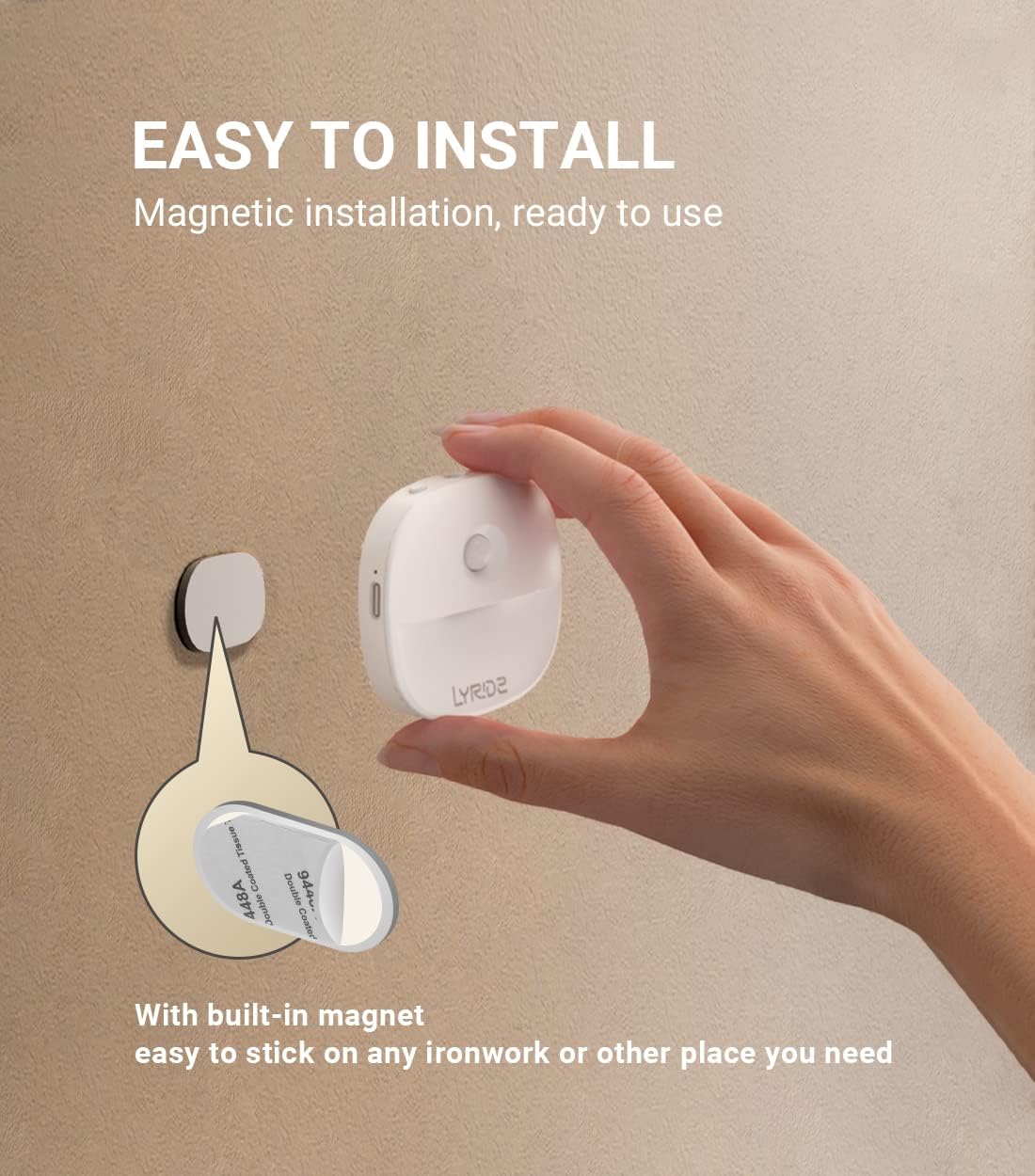Comfortable Light & Reject Dazzling: People are tired of the dazzling lights at night, this battery night light of LYRIDZ adopts a semi-hidden LED lamp bead design. In addition, the color temperature value of 1800k is very soft, comfortable and not dazzling while ensuring the brightness of the light; As a sleep night light, you will feel be relaxed and comfortable, don’t wake you up at midnight