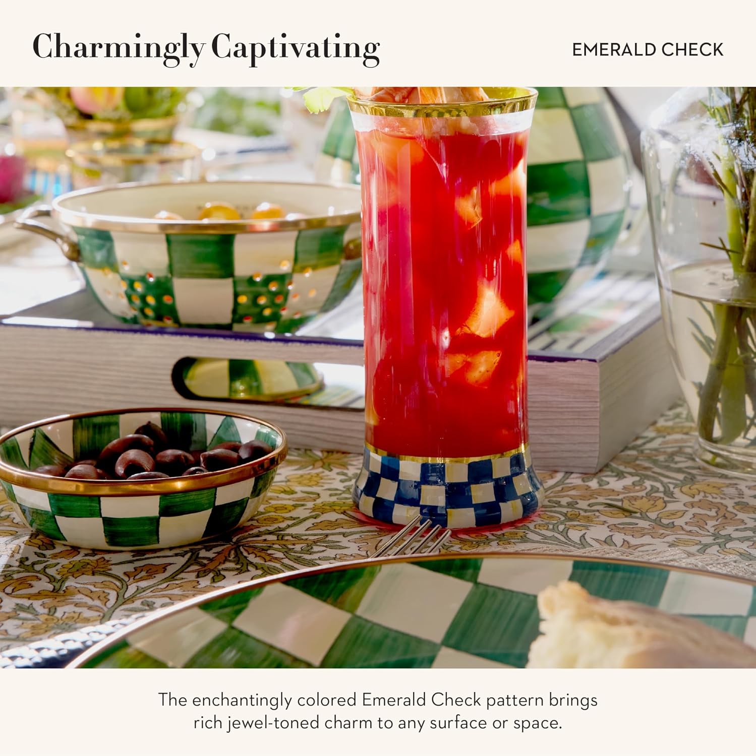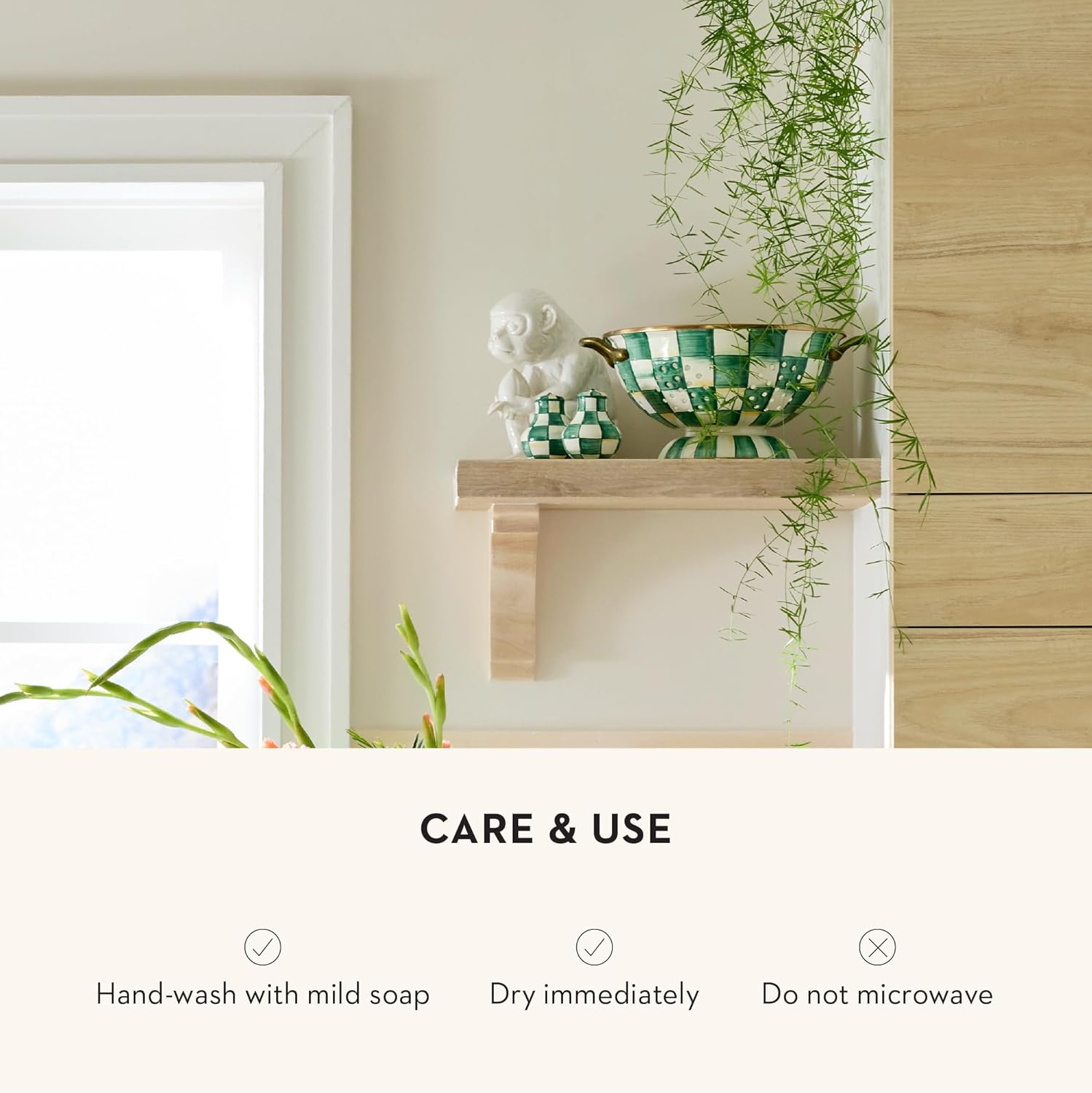 ELEGANT KITCHEN DECOR: This metal strainer will add even more cute kitchen style to your home. It has a hand-glazed steel underbody and antiqued brass-finished handles and is decorated with enchanting hand-painted green-and-white checks.