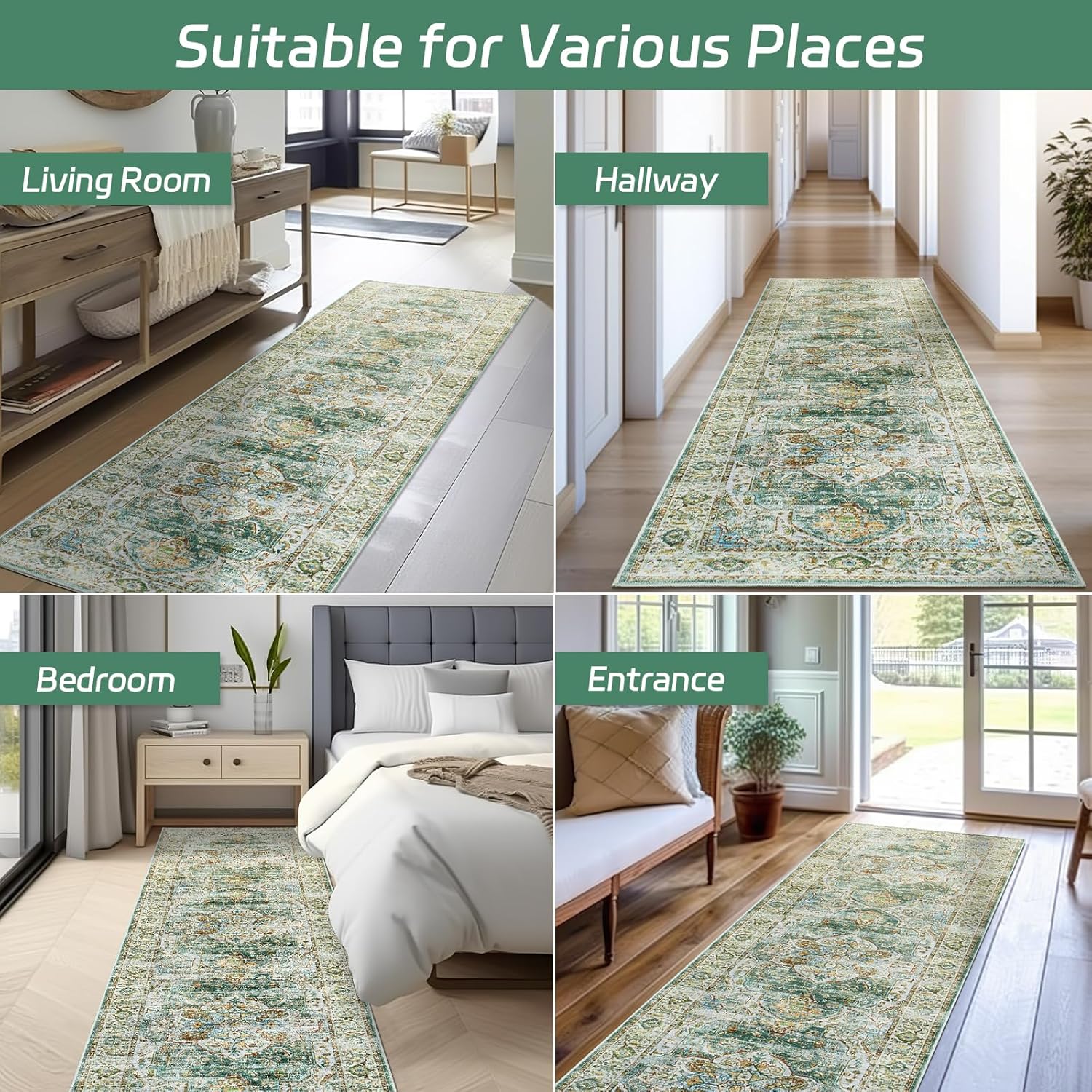 Functional Runner Rug: 2×8 Rug Runner Liven Up Or Complement Your Decor And Fine Floors In The Foyer Or Entryway, Back Door, Living Room, Dining Room, Kitchen, In Front Of The Fireplace, Hallways, And Will Not Obstruct Doorways. The long runner for hallway is also ideal as a gift for your friends, parents, kids and family.