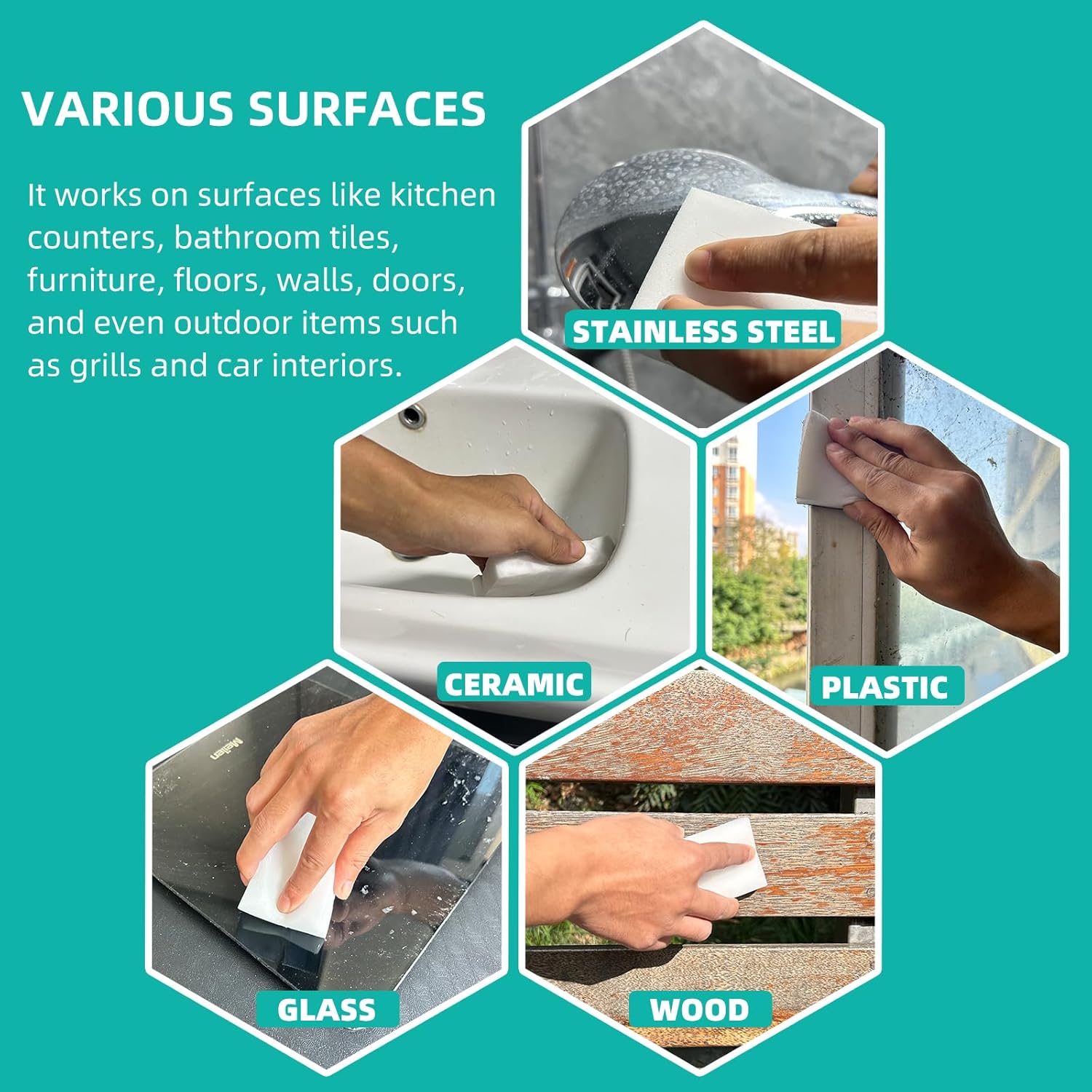Eraser Sponge for Every Room: Suitable for kitchens, bathrooms, furniture, appliances, floors, and even outdoor equipment. Versatile for tackling everyday messes in your home, office, or car, these magic sponges clean a wide variety of surfaces with ease