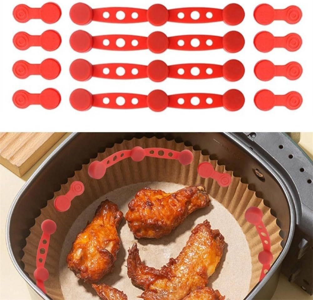 [EFFECTIVE FIXATION] The Air Fryer Magnetic Silicone Buckle effectively holds parchment paper in place, reducing unwanted movement and ensuring a safe cooking environment by contact with heating elements.