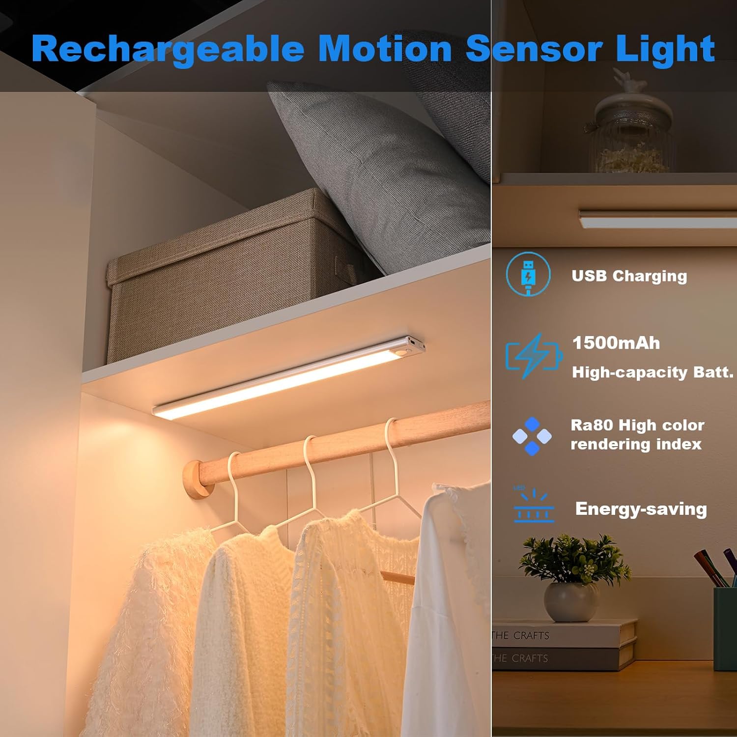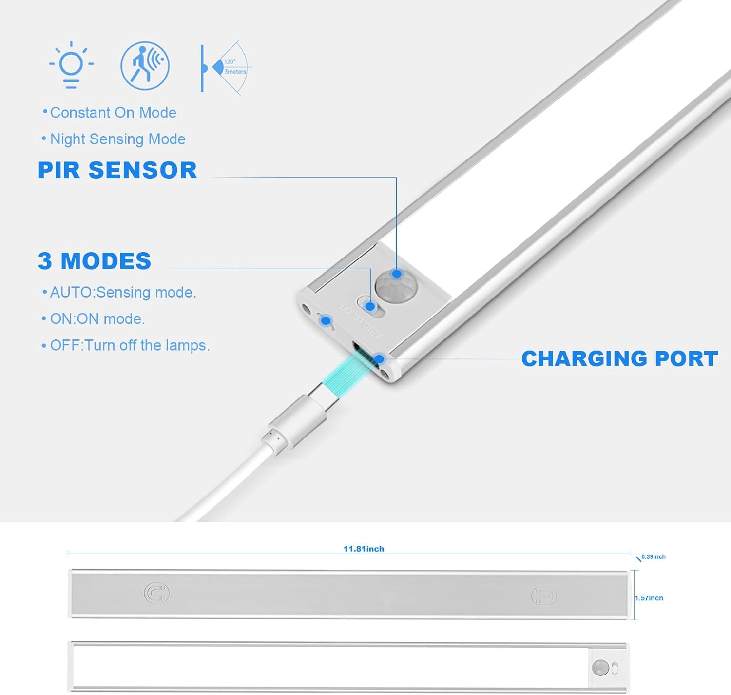 Motion Sensor Lights-11.8 inch Under Cabinet Lights with Big Large capacity rechargeable battery, 54 LED, Motion Sensor function