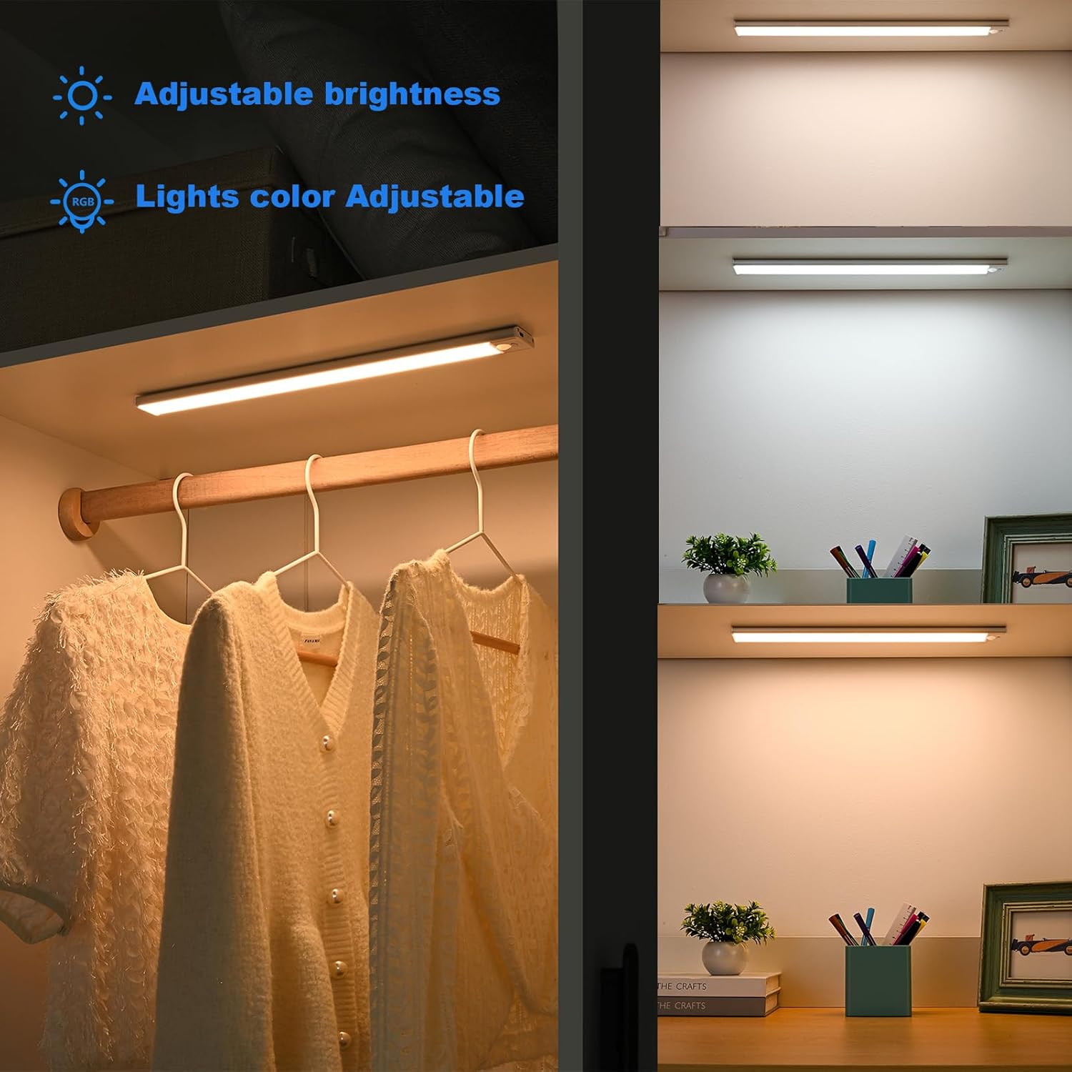 ✅【0% -100% adjustable closet lamp+3 Lighting Colors: Warm/Daylight/Cool】Switch 3 colour temperatures (3000K Warm White / 4000K Natural White / 6000K Cool White) motion sensor lights between Warm, Daylight, or Cool lighting color to match your mood. Also, this under cabinet lights support adjust brightness from 0% to 100%.