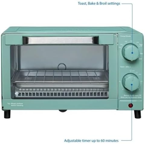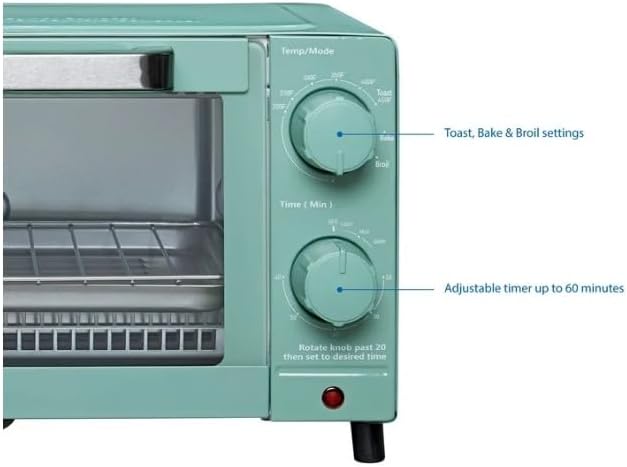 🔘Compact and powerful, this model stands out among toaster ovens countertop units and pairs well with air fryers. Fits 9 inch pizza or 4 slices of bread. Great for dorms, RVs or small kitchens where space and function matter.