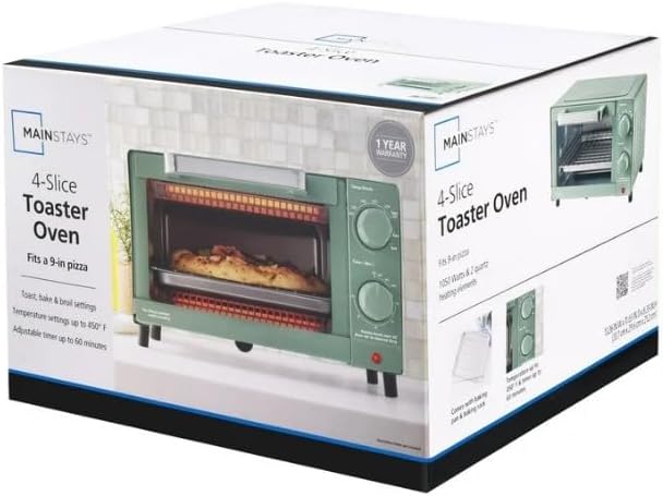 🔘Versatile toaster 4 slice oven complements your kitchen appliances with air fryer-style crisp results. Toast, bake, or broil meals with ease. Perfect size for 9 inch pizza, snacks or small batch cooking in compact spaces.
