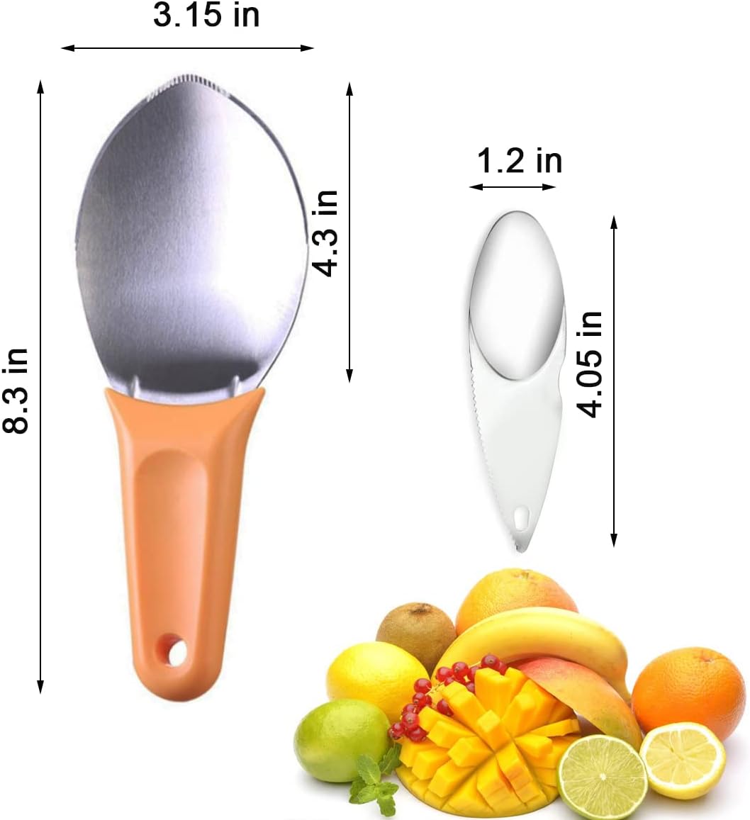 This combination can be used as a fruit knife or peeler. Cut a variety of fruits, including mango, watermelon, avocado, kiwi, Pitaya, etc. It is easy to cut smoothly and evenly. It can be cut into any thickness and shape. It depends on your mood. Easy to clean, dishwasher safe.